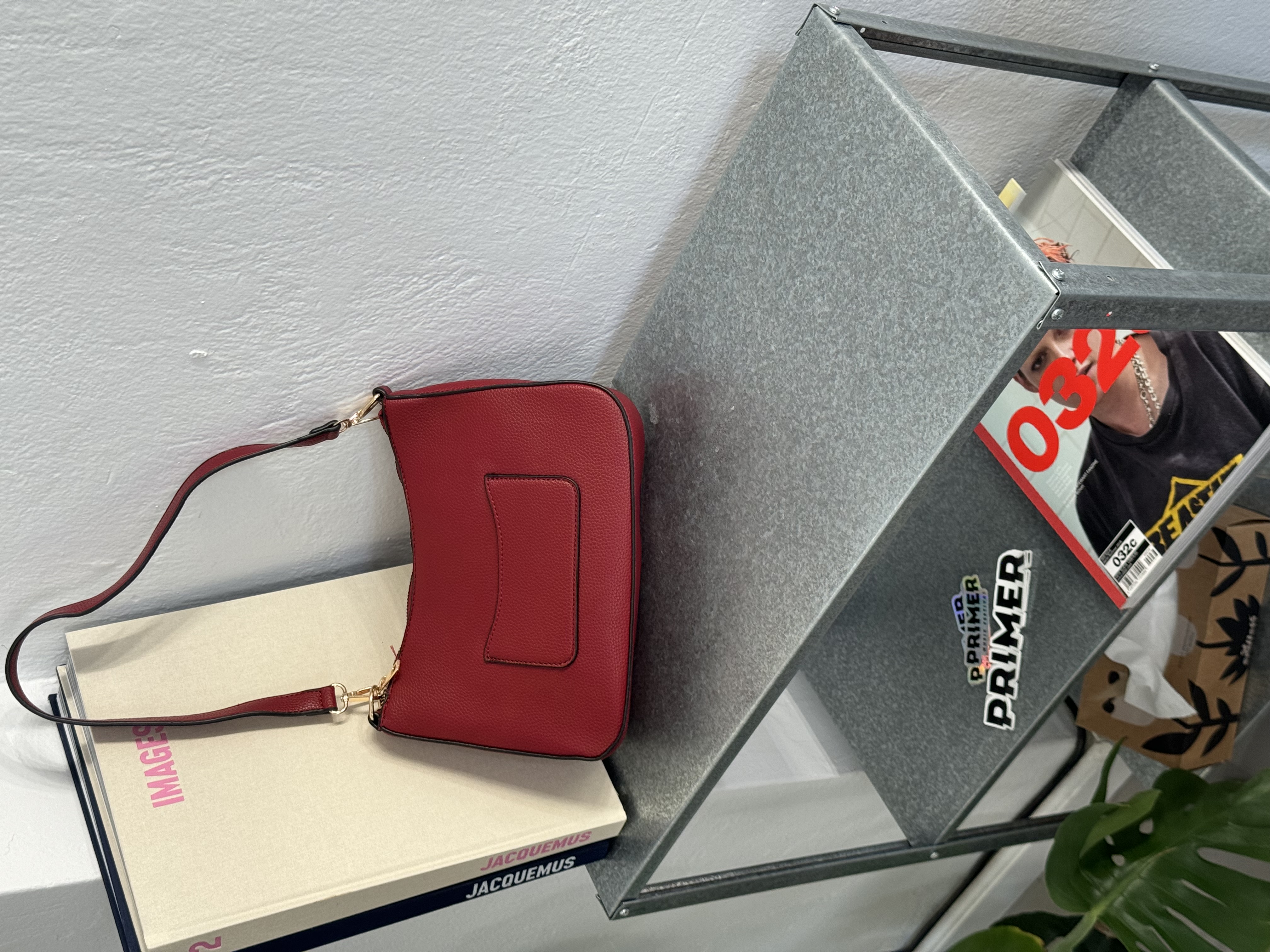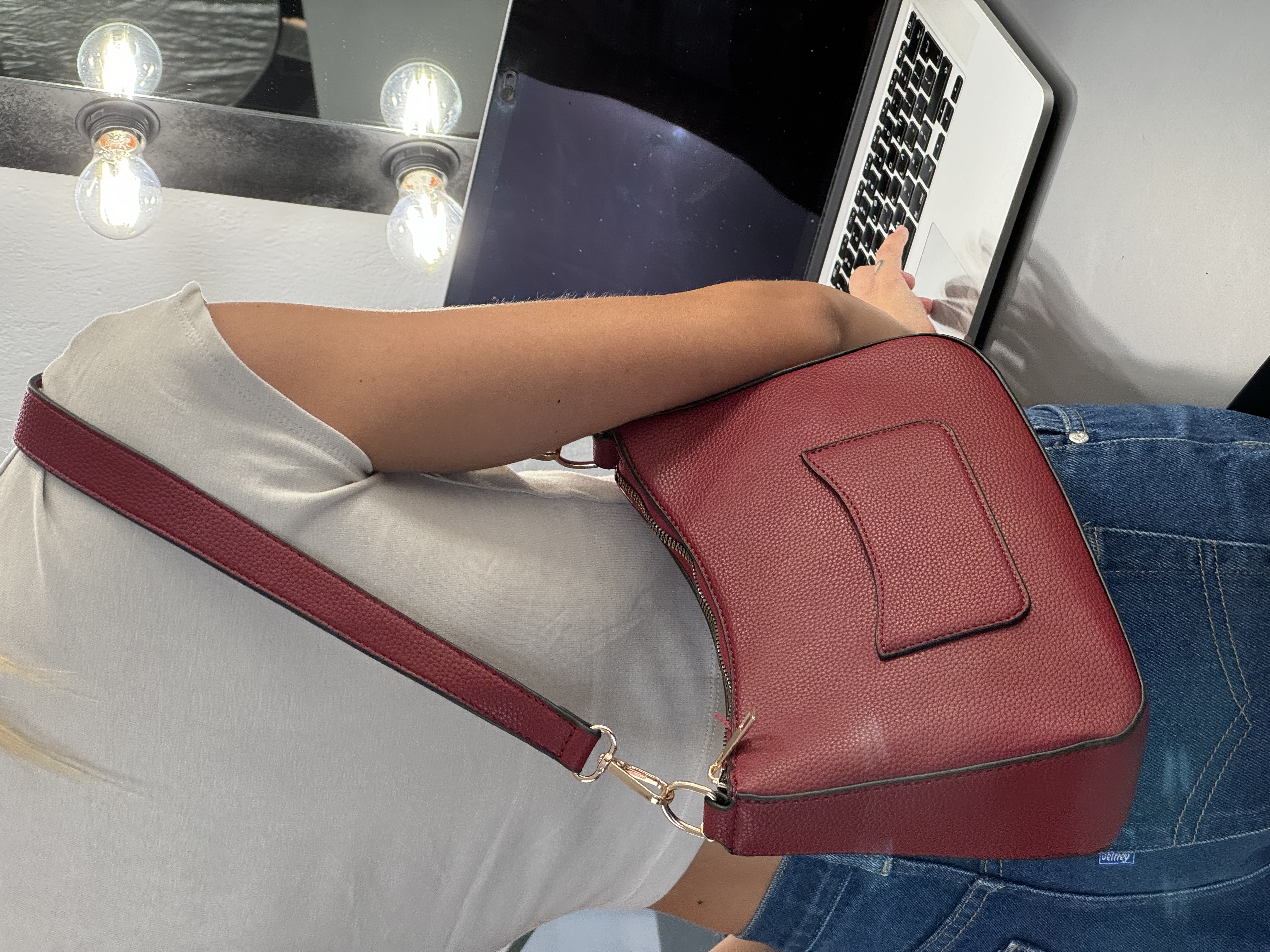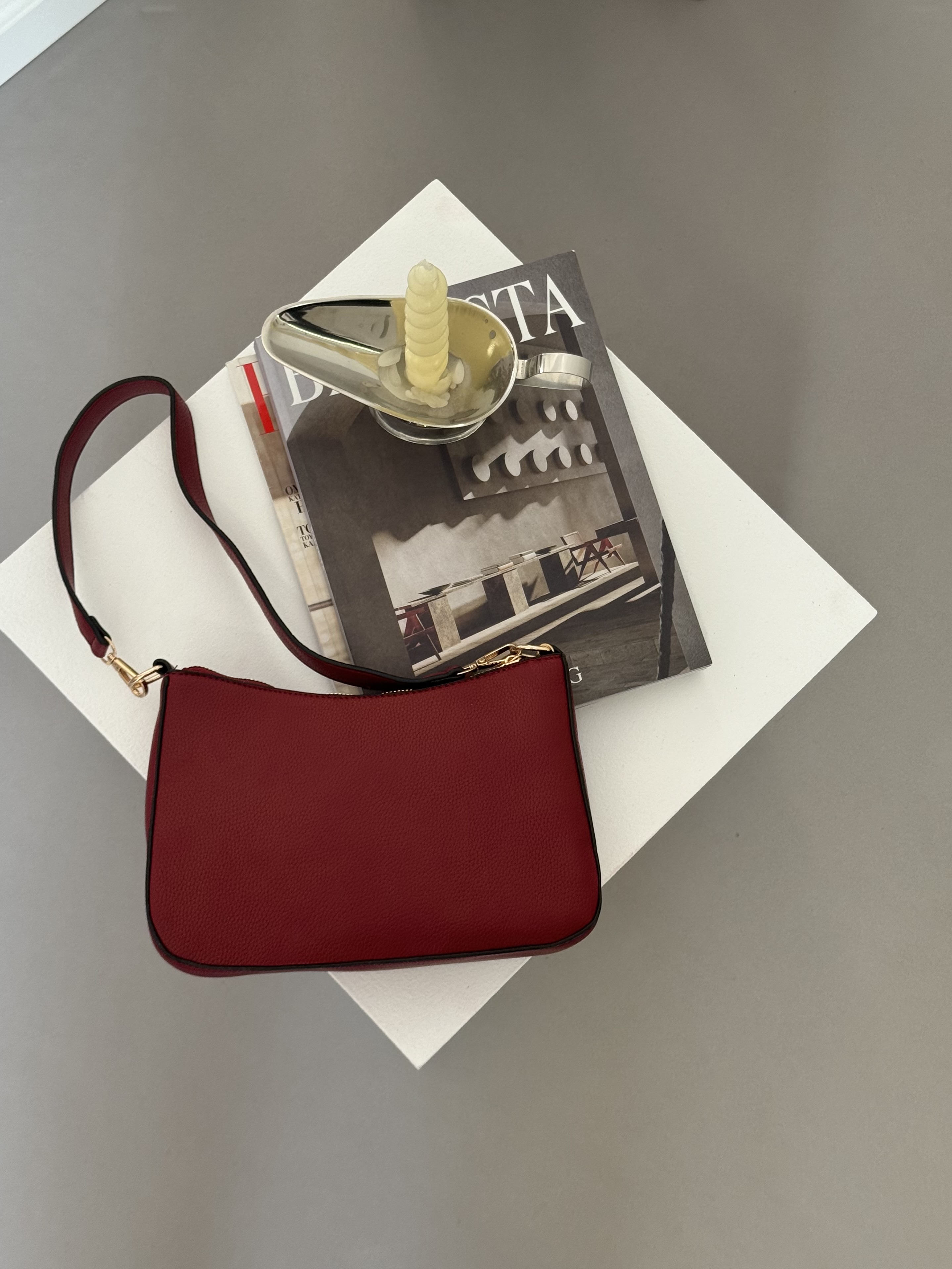 Shoulder bag with extra card holder in wine red