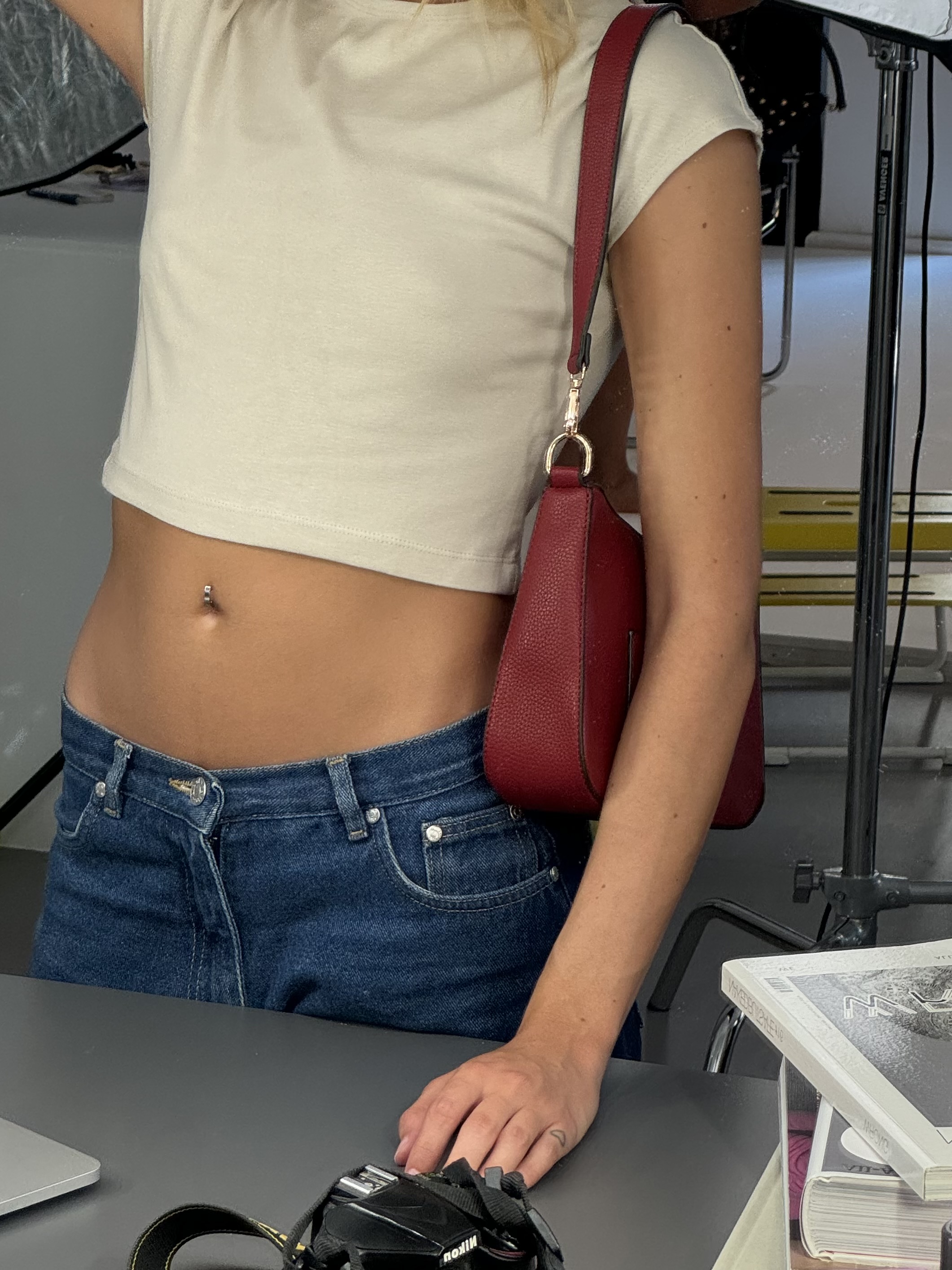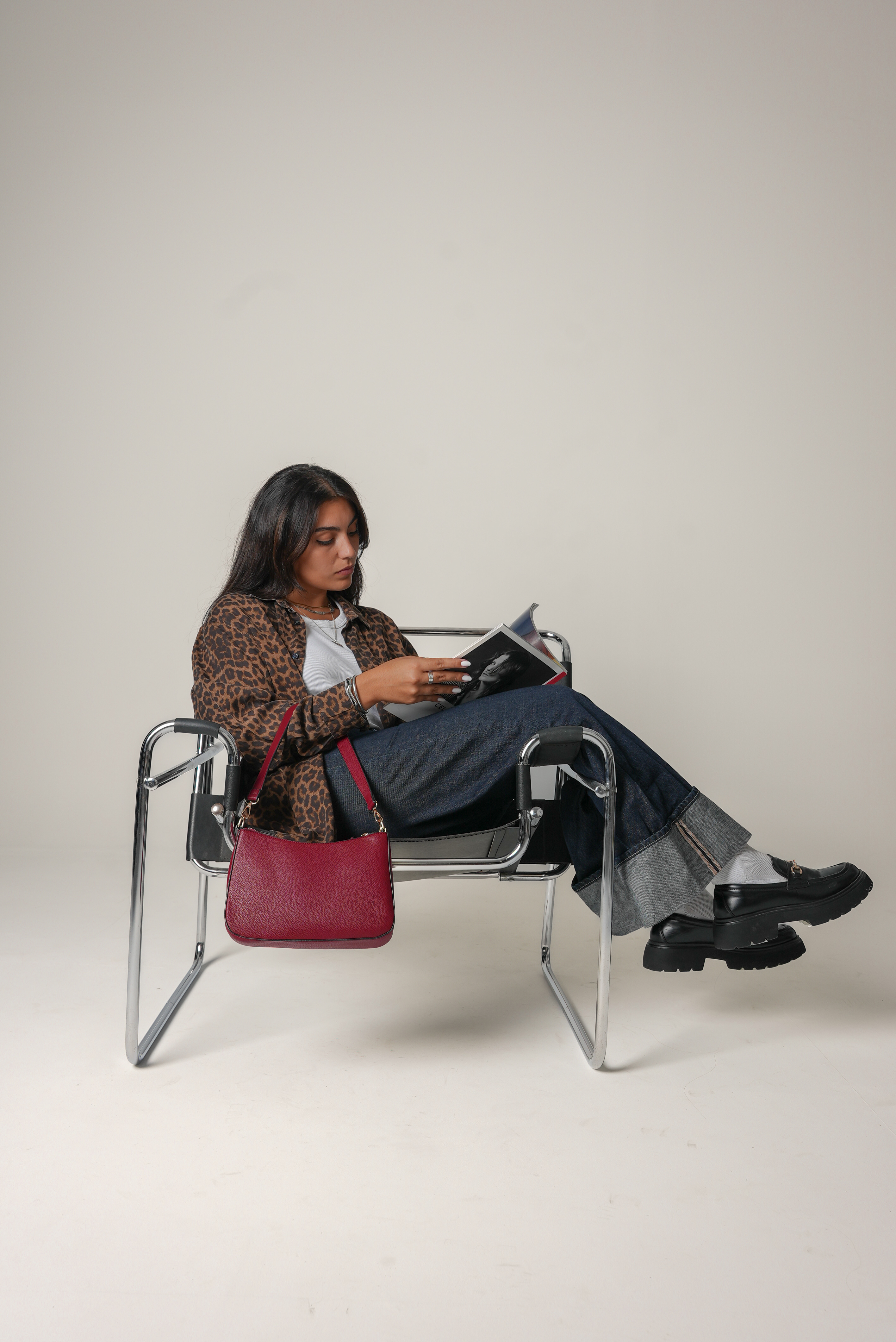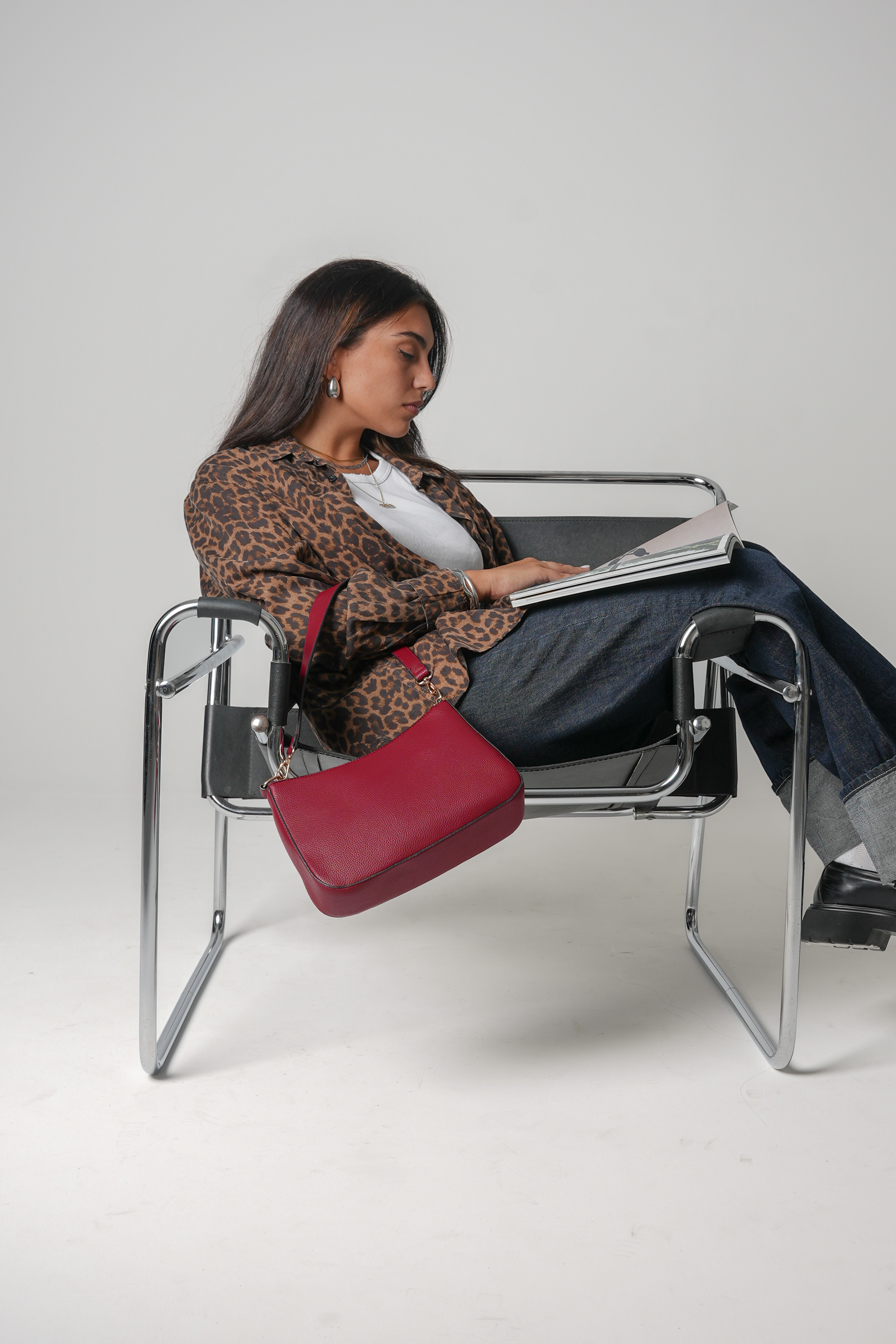 Shoulder bag with extra card holder in wine red