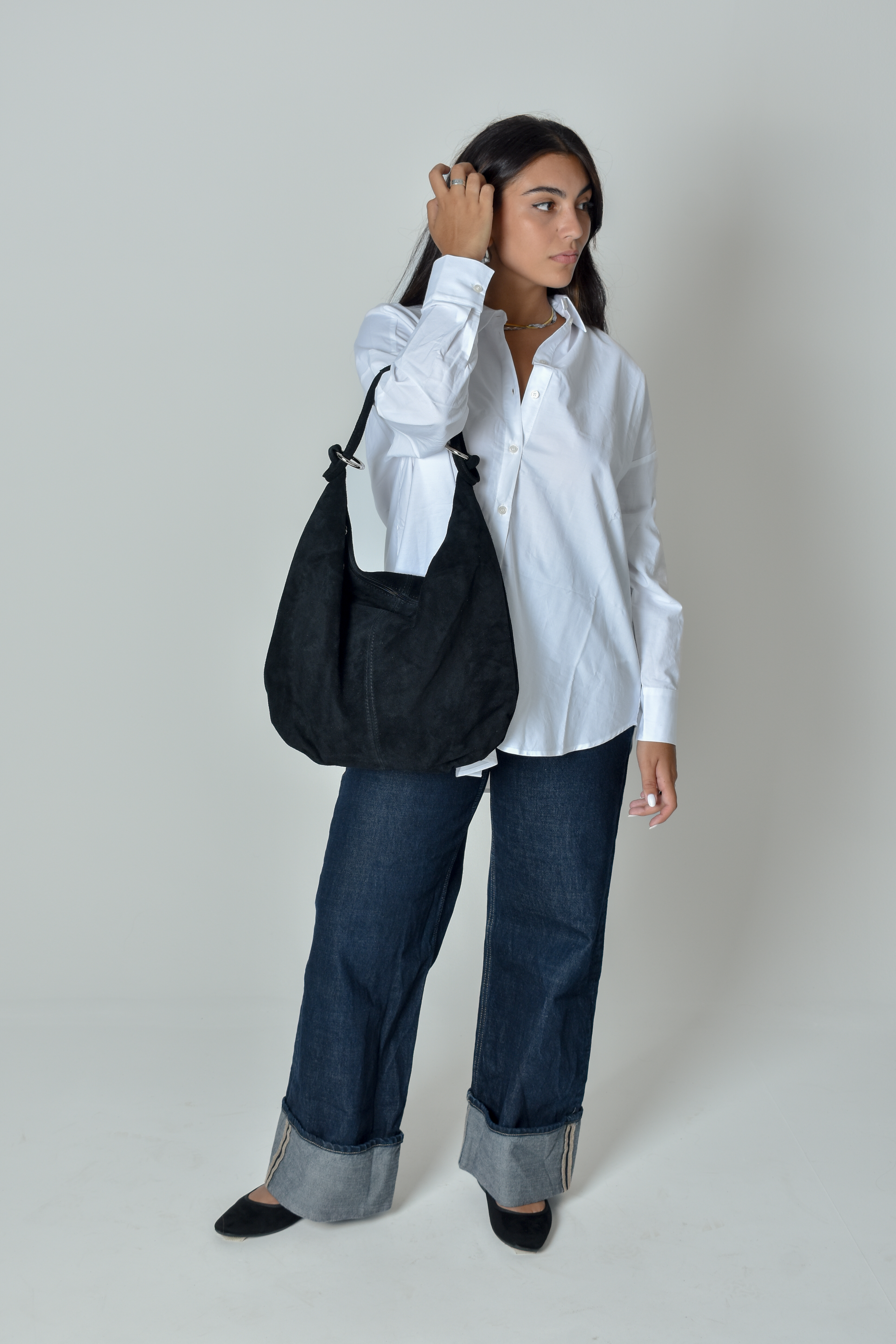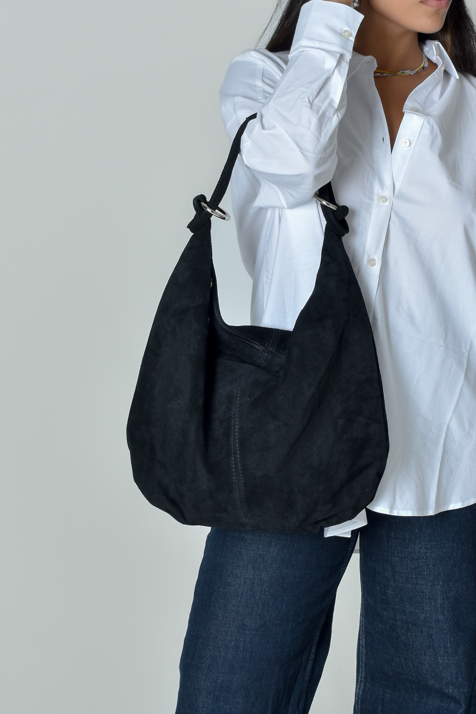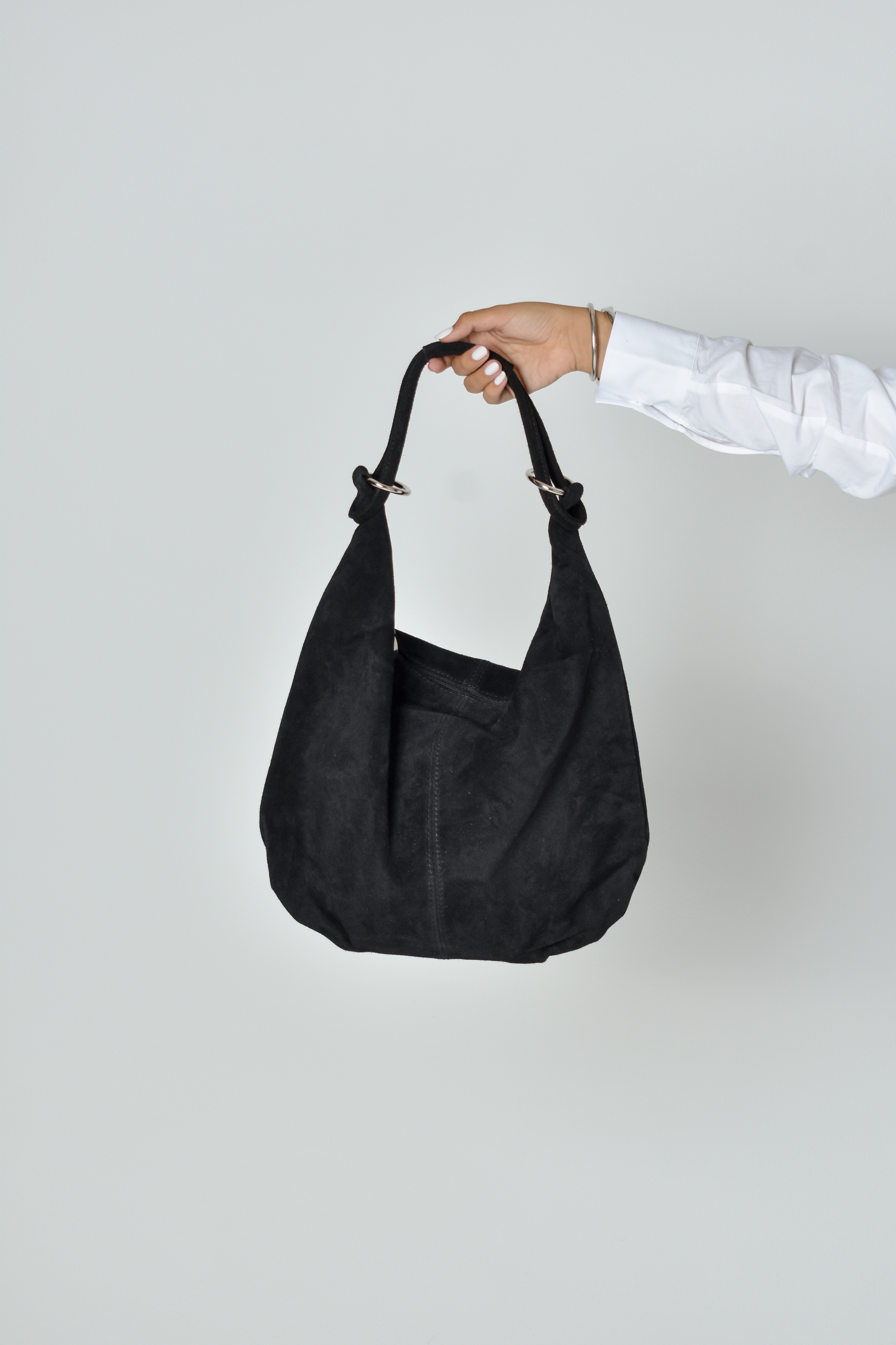 Suede Shopper bag with hoops i