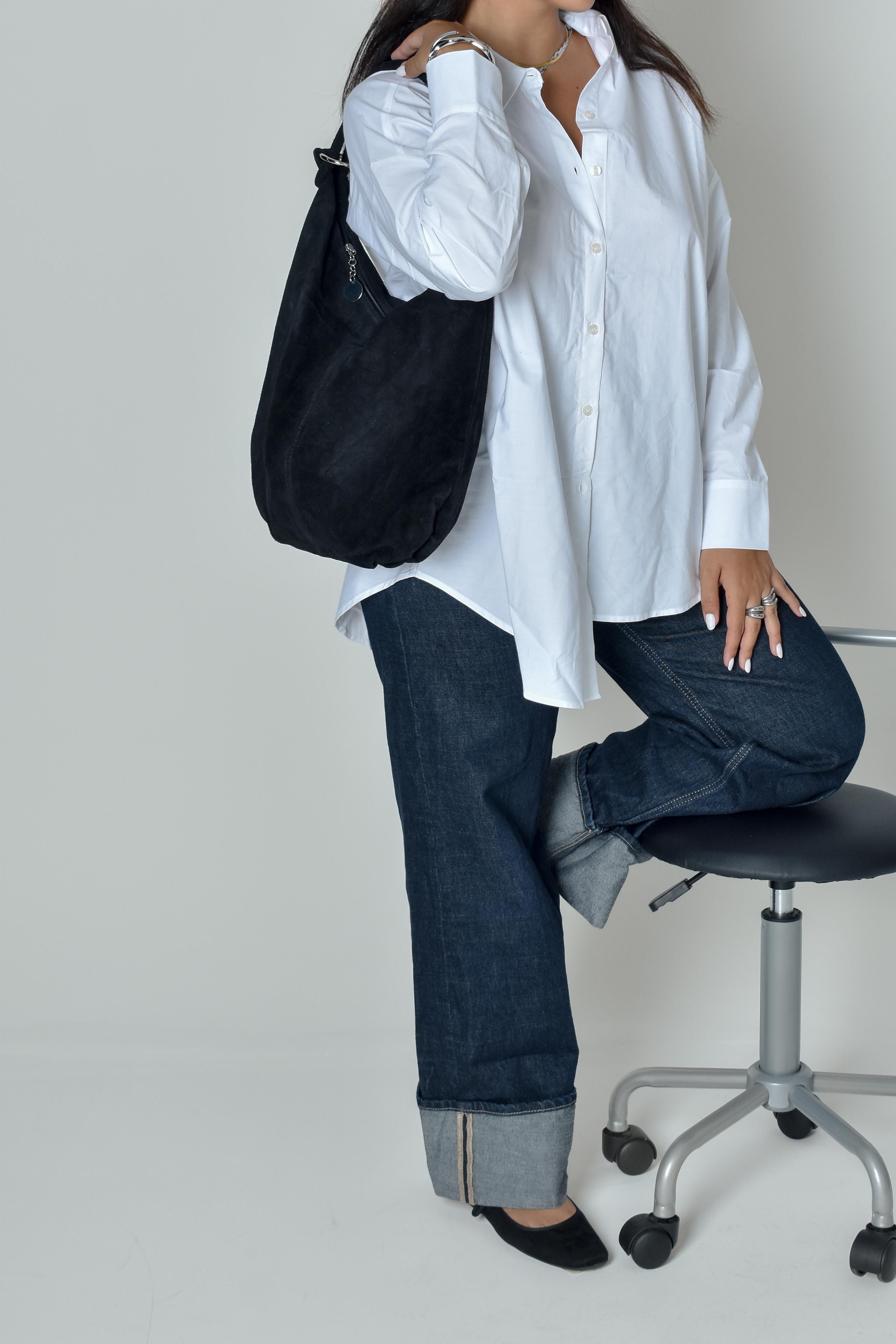 Suede Shopper bag with hoops in black