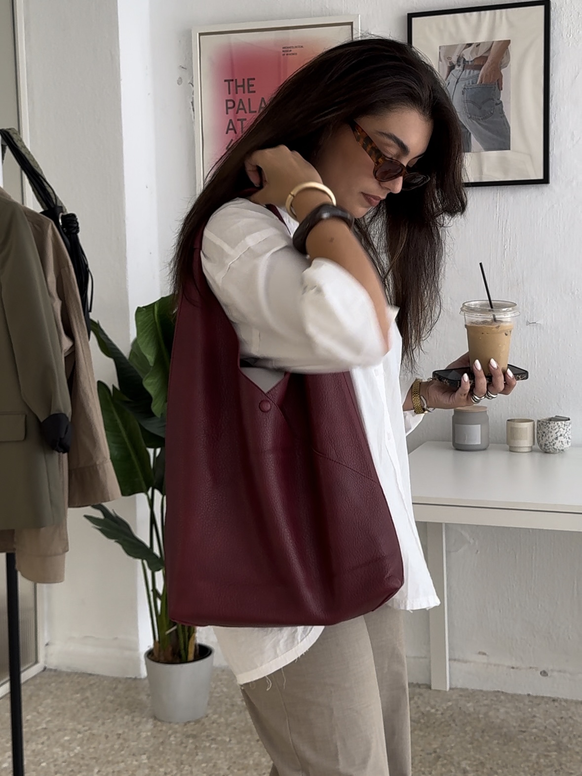 Urban τσάντα ώμου με λεπτομέρεια σε χρώμα wine red
