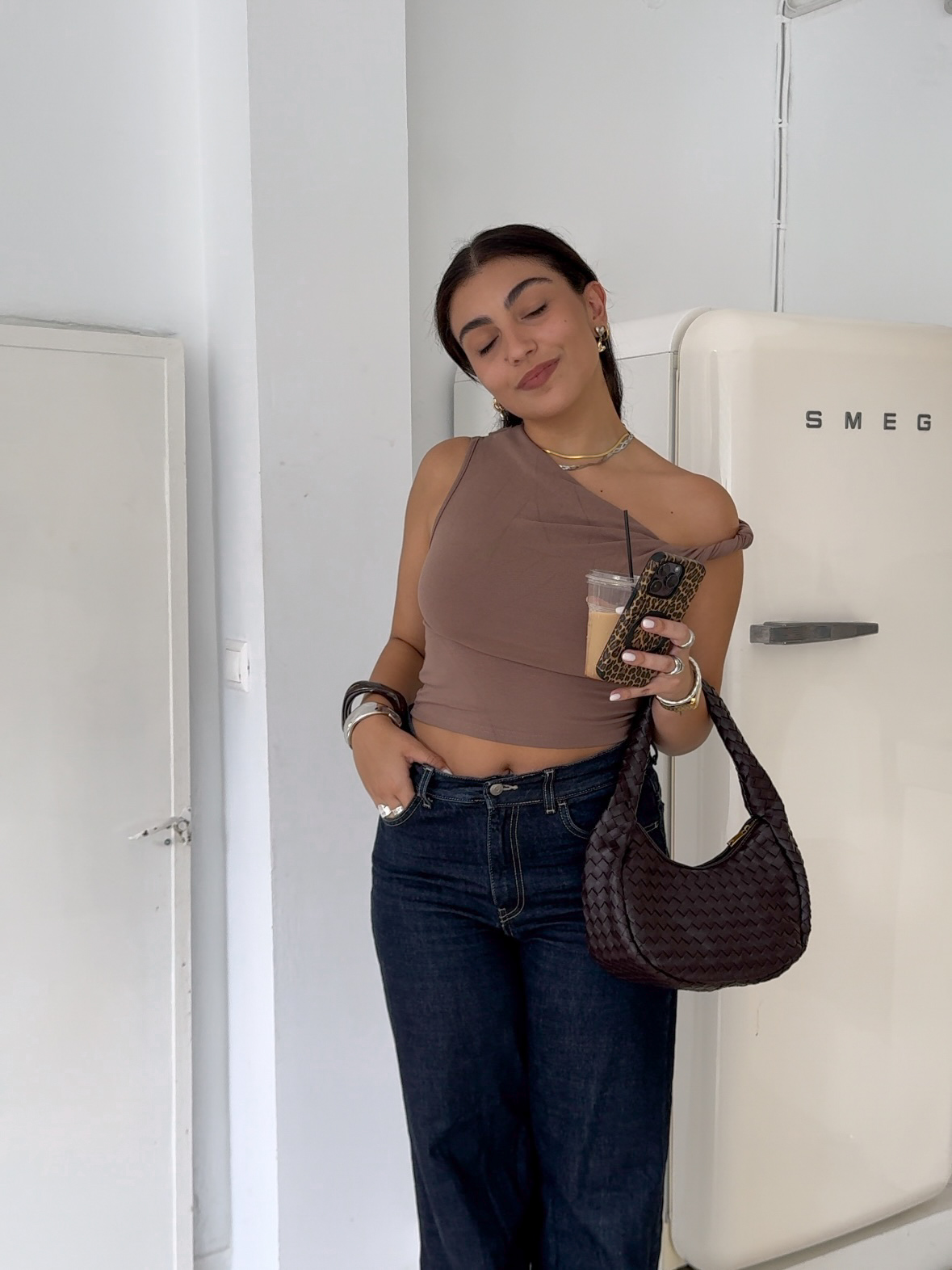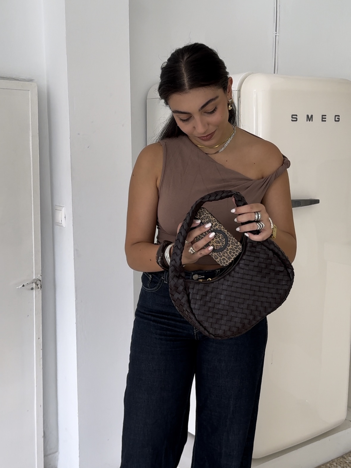 Vegan shoulder bag in chocolate brown