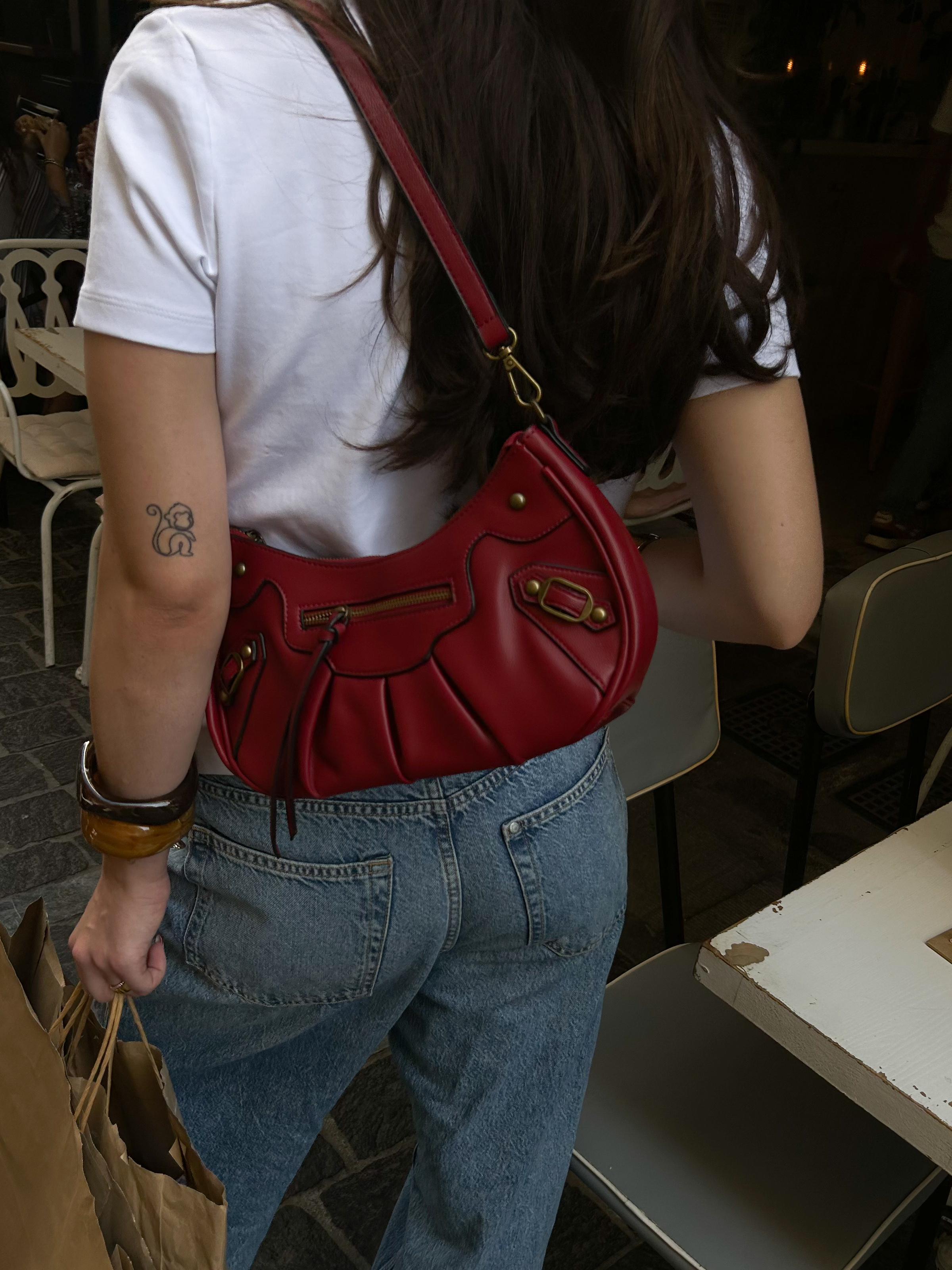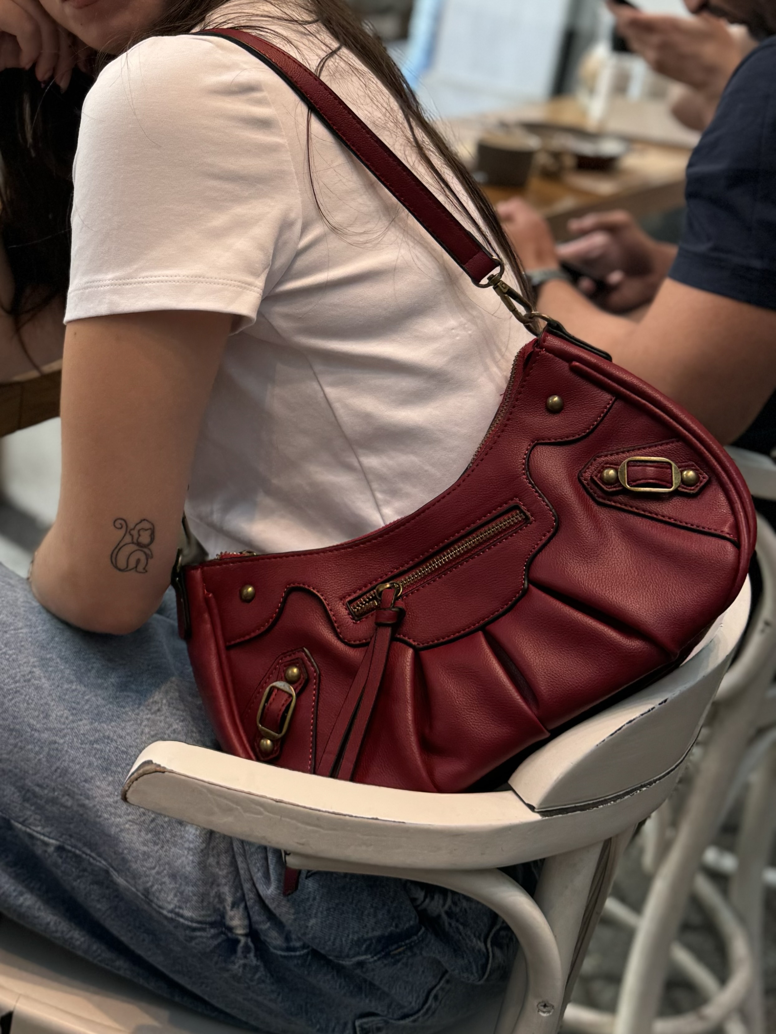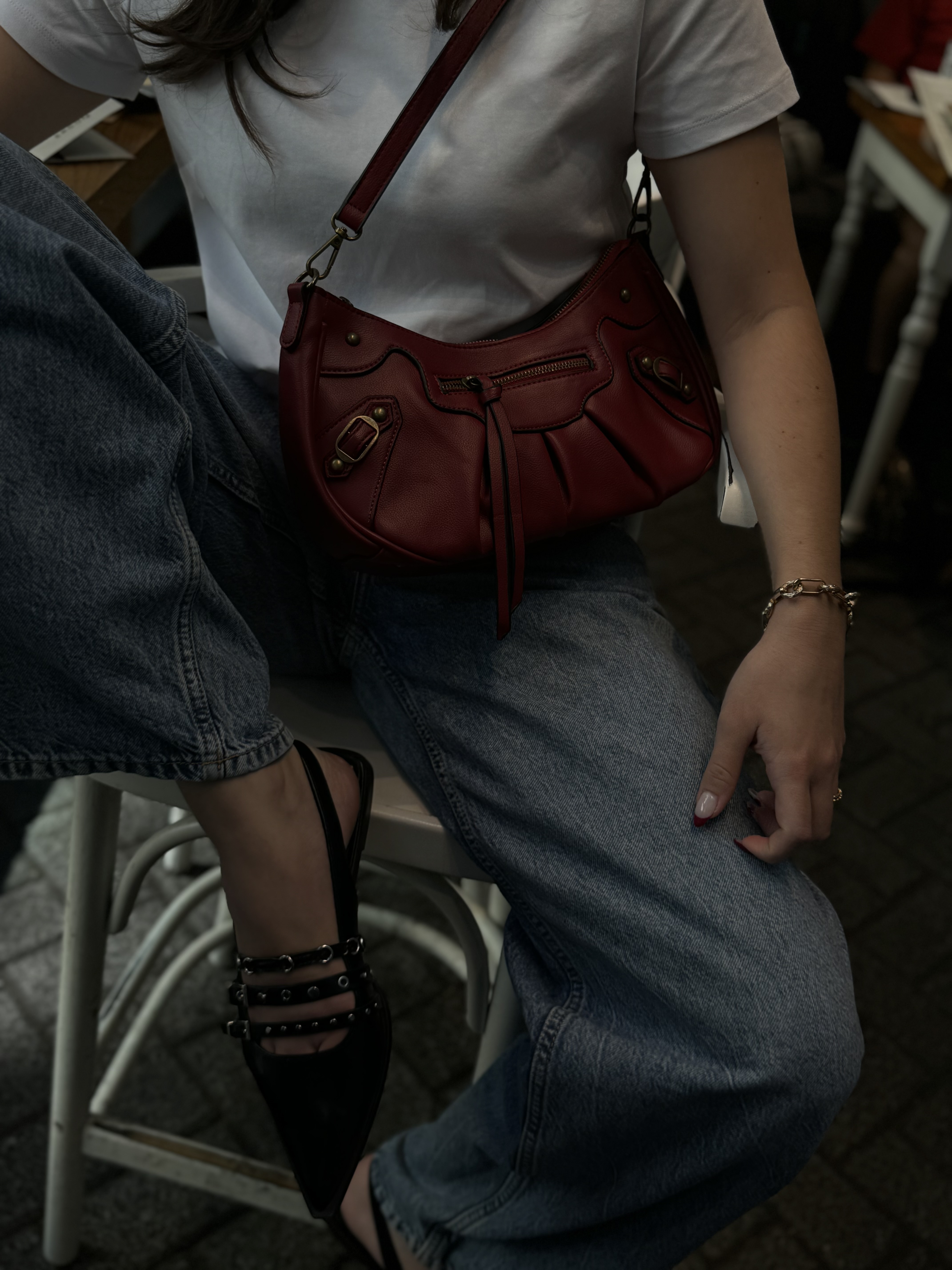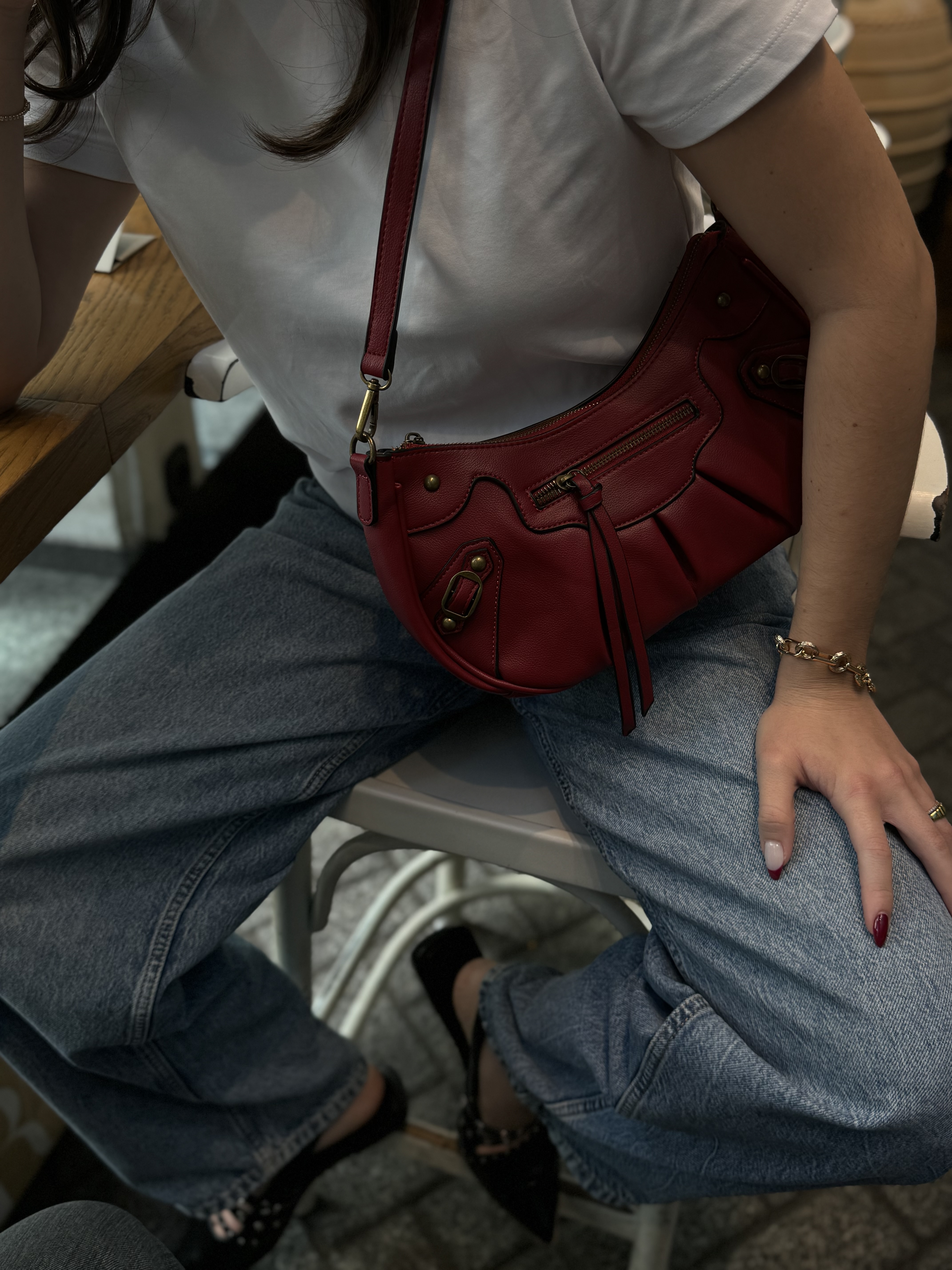 Hobo bag with gold details in wine red