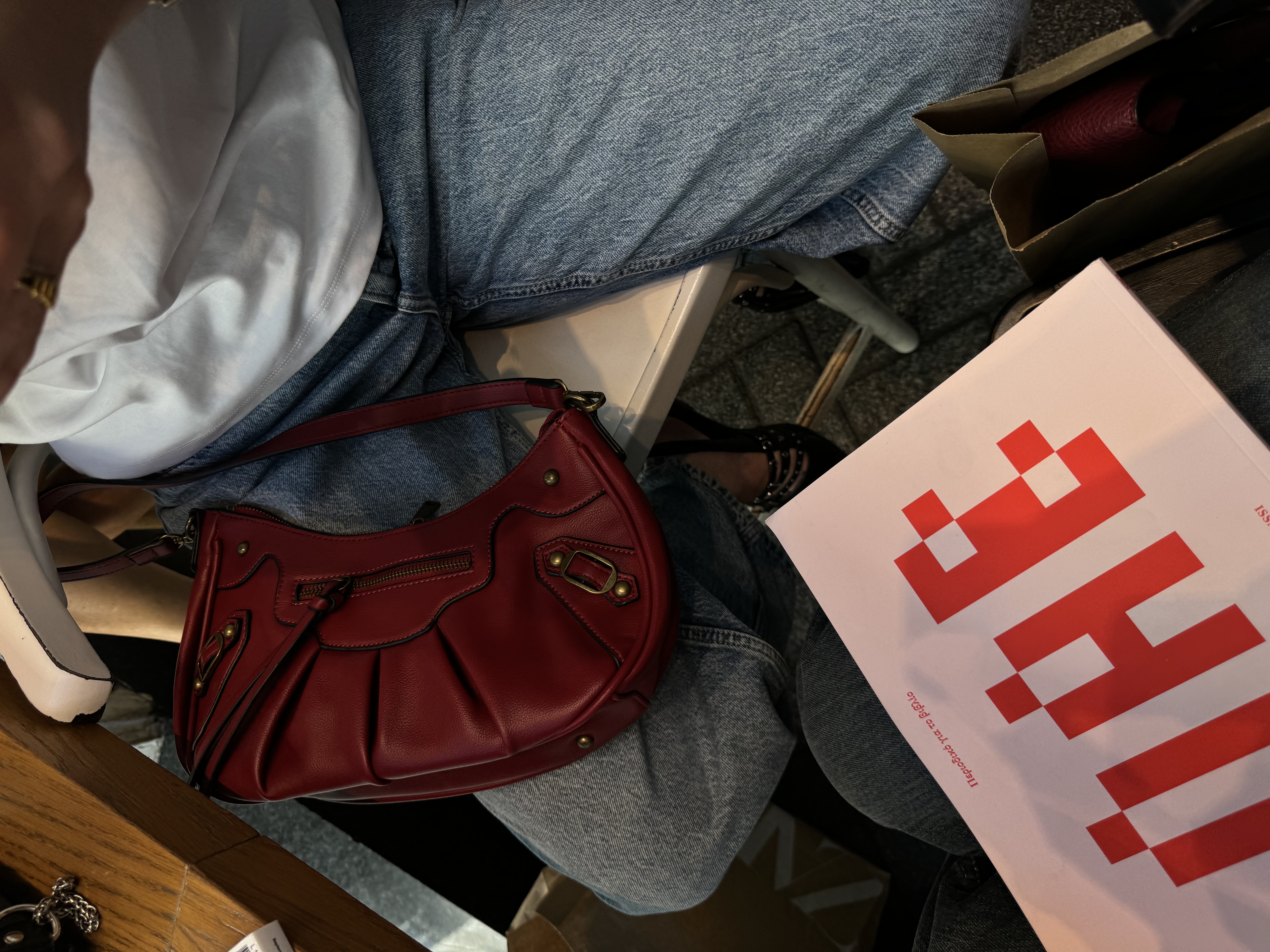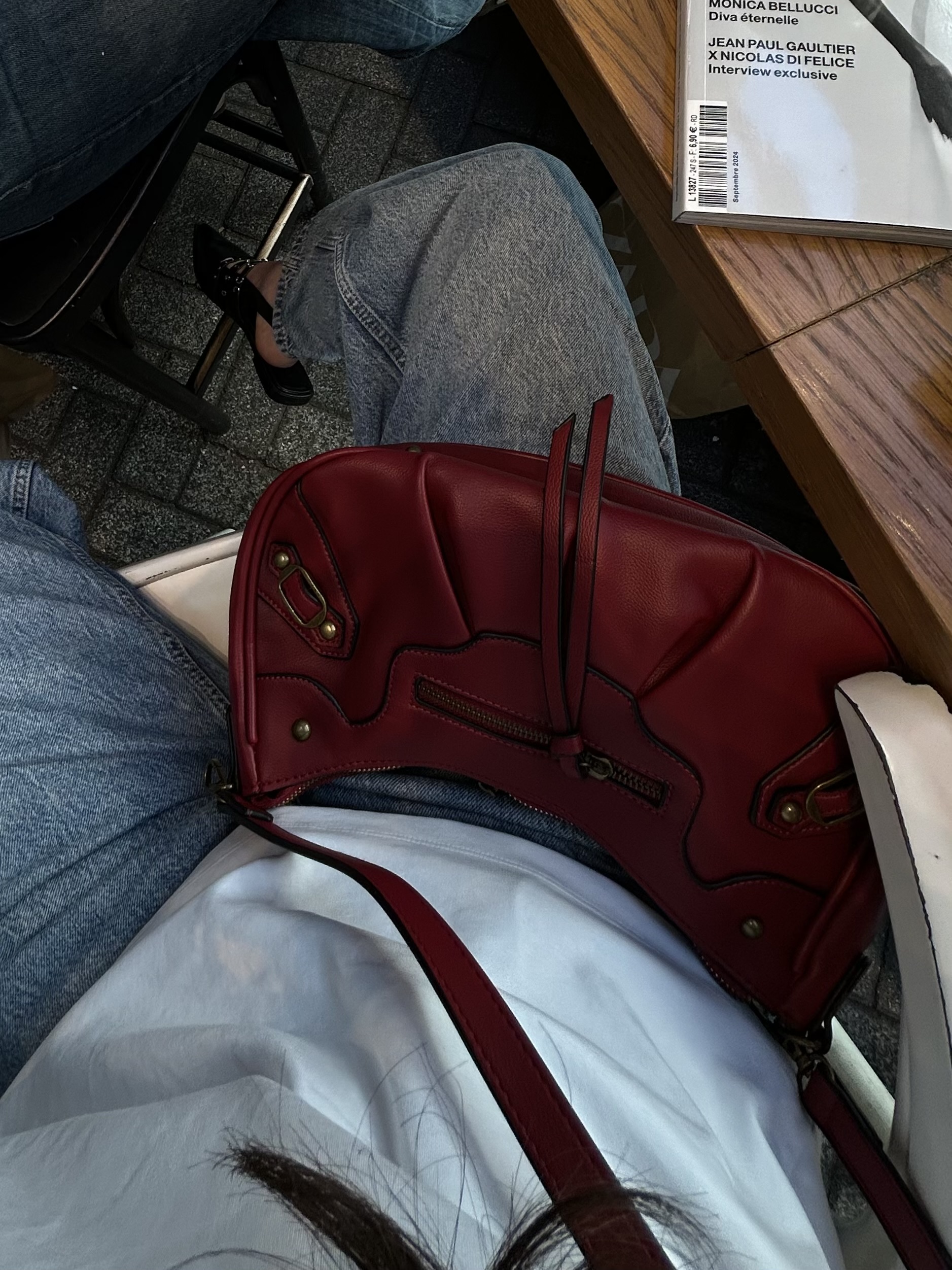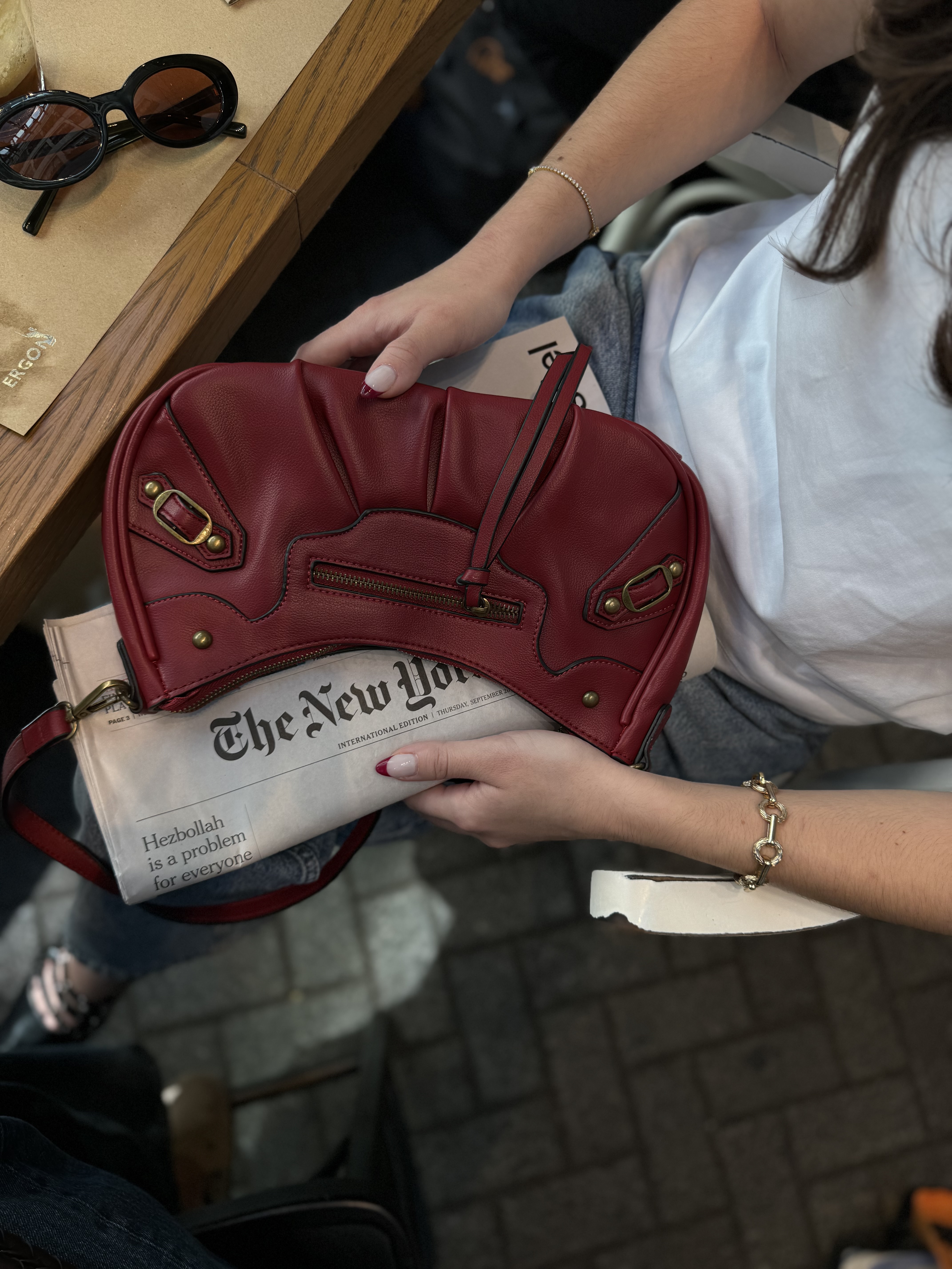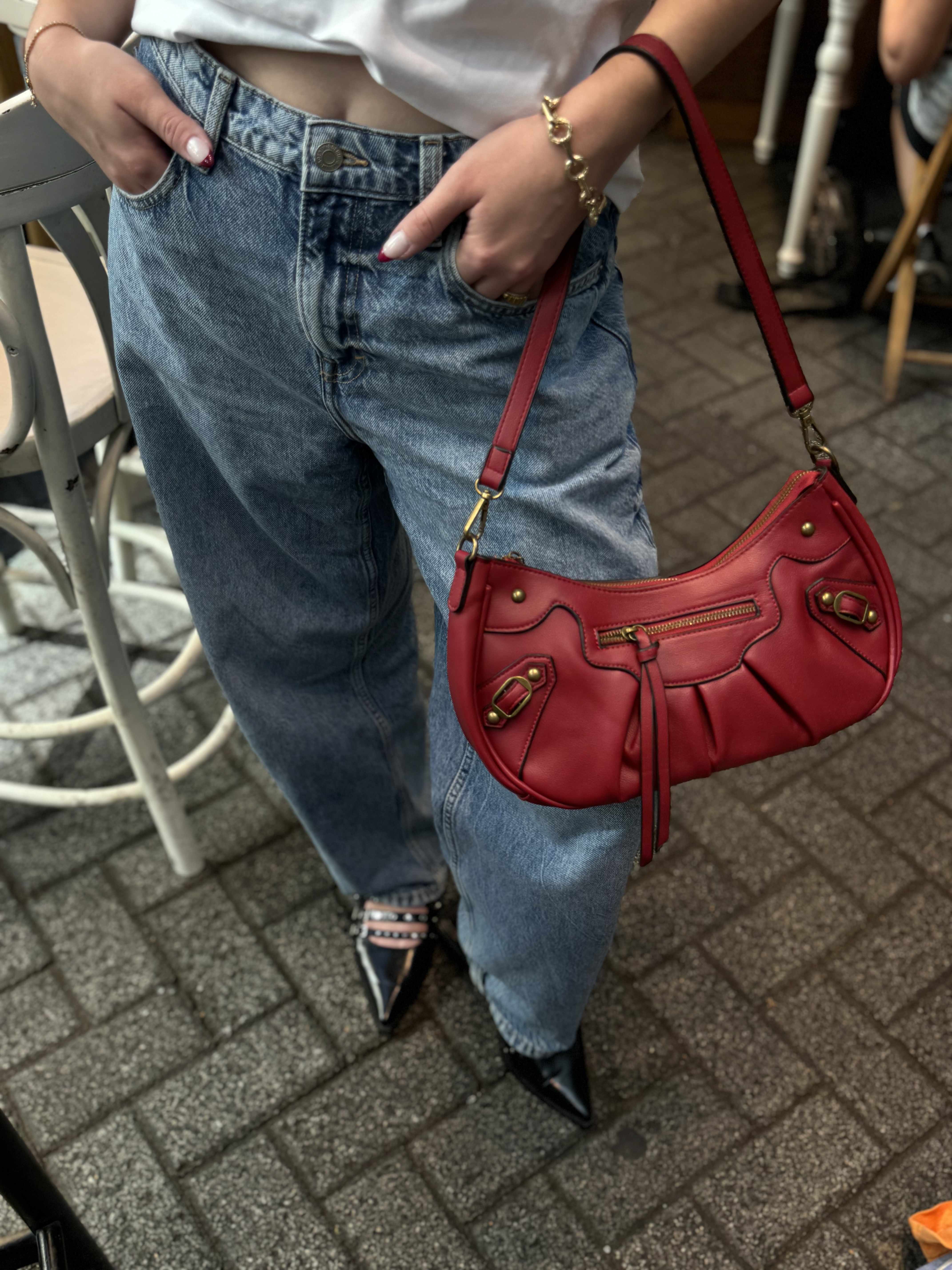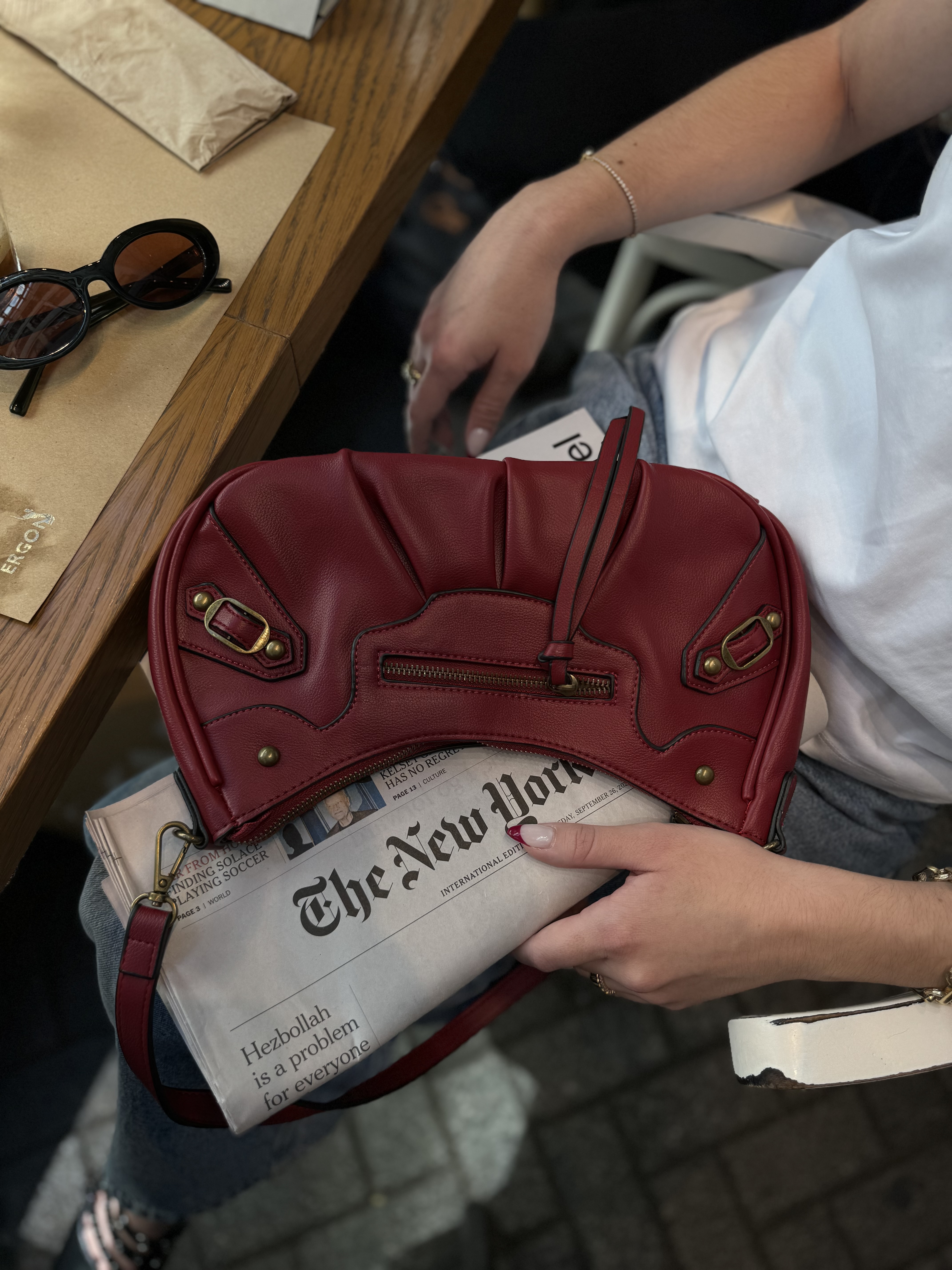 Hobo bag with gold details in wine red