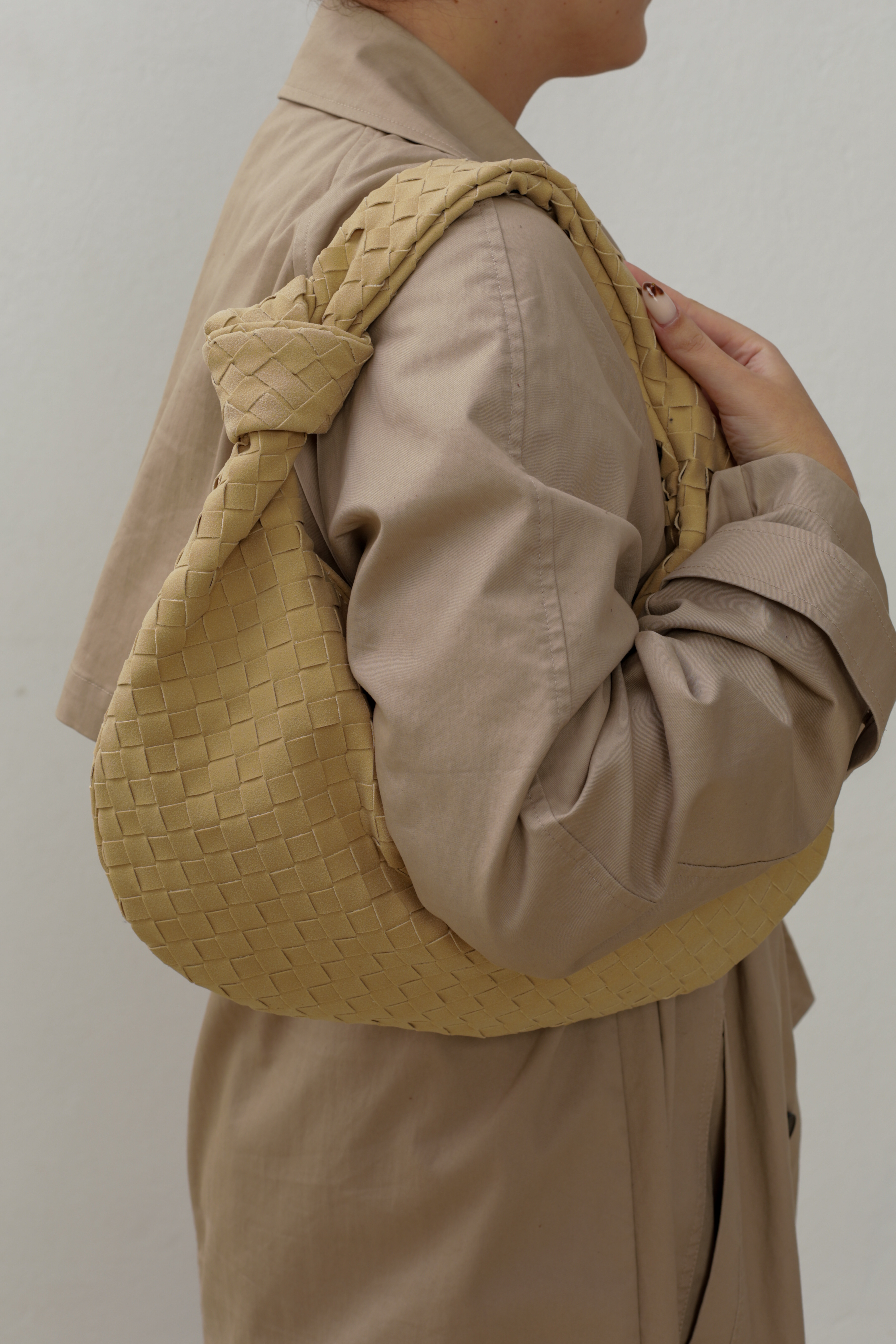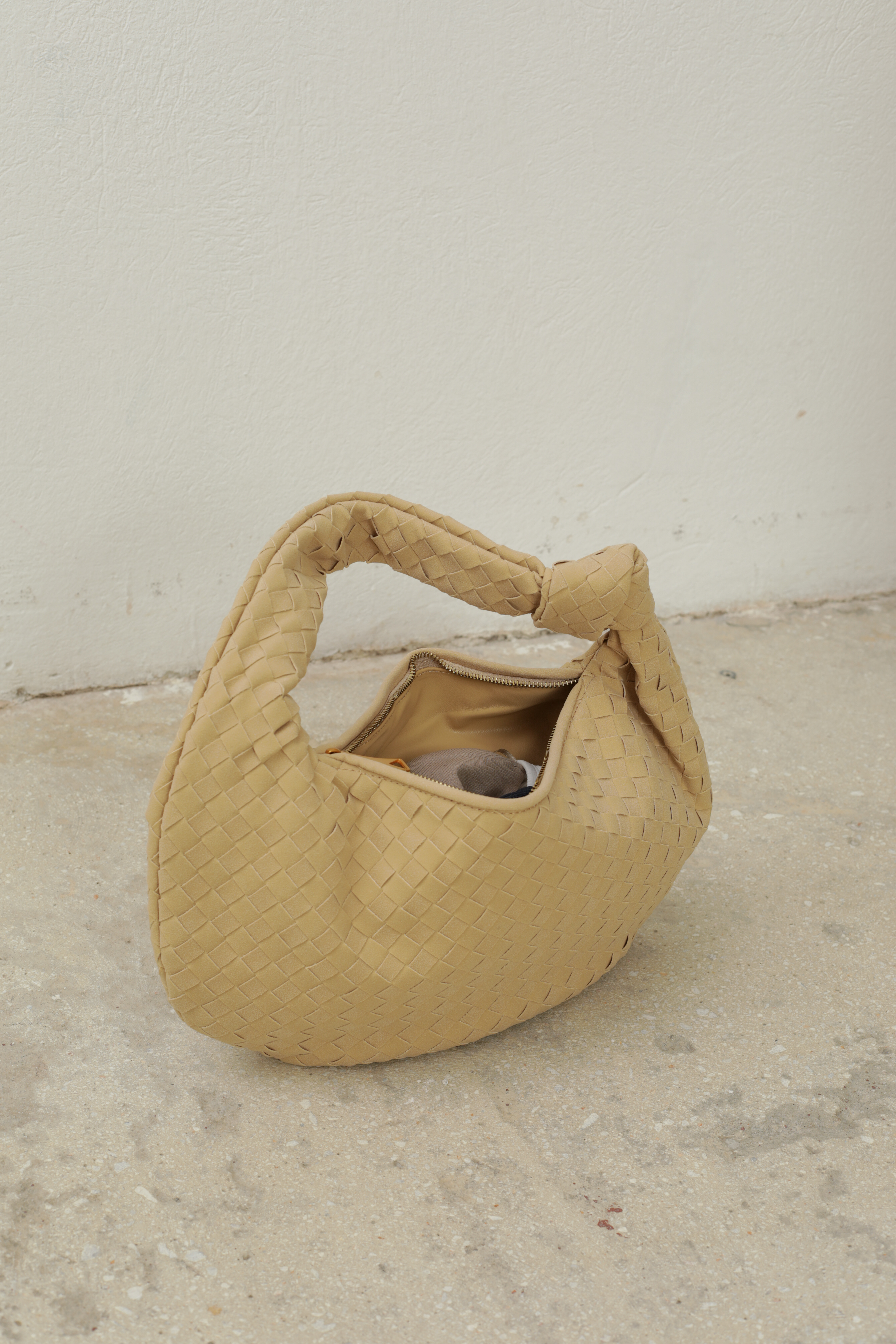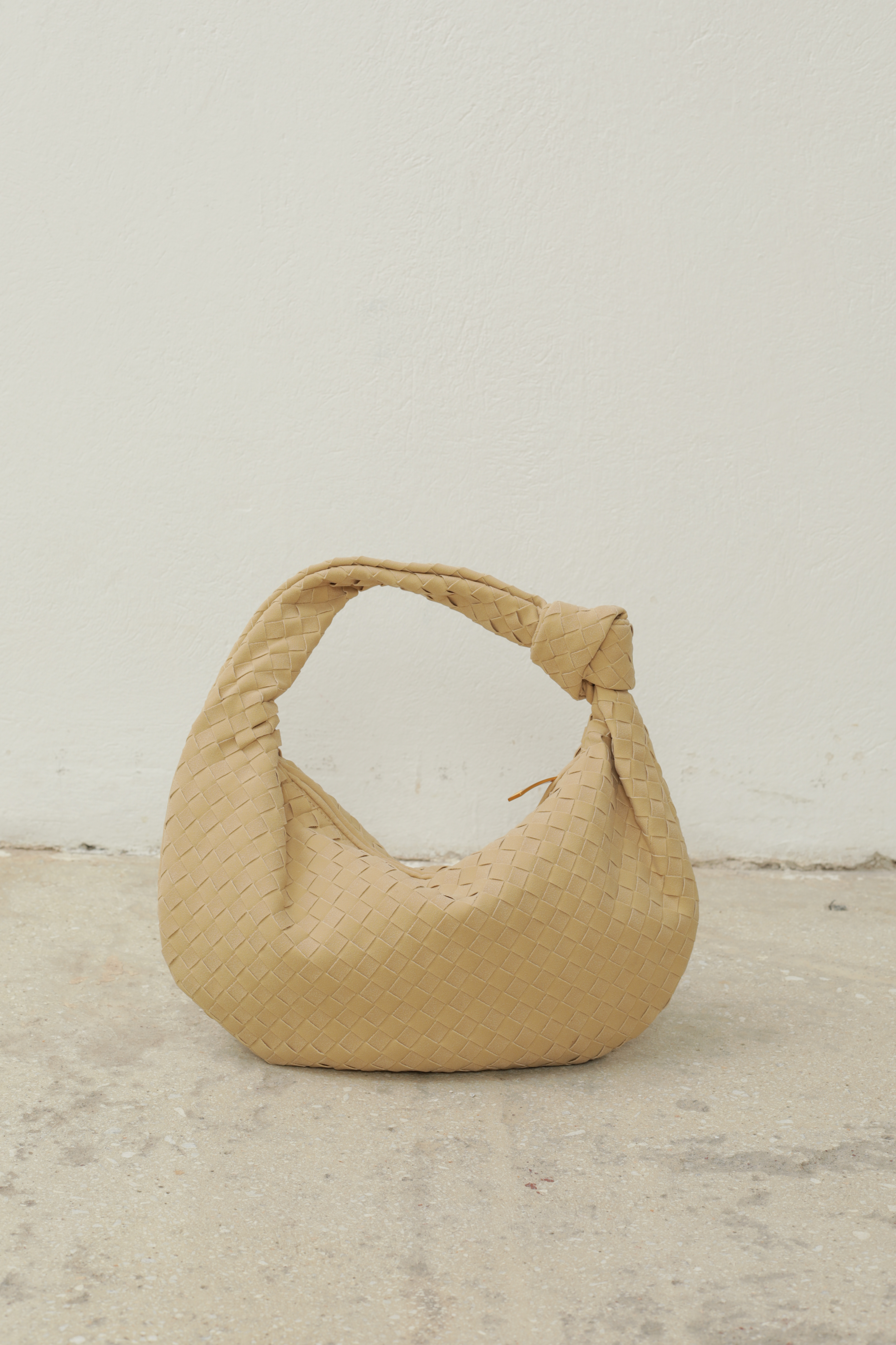 Suede Hobo bag with knot in beige