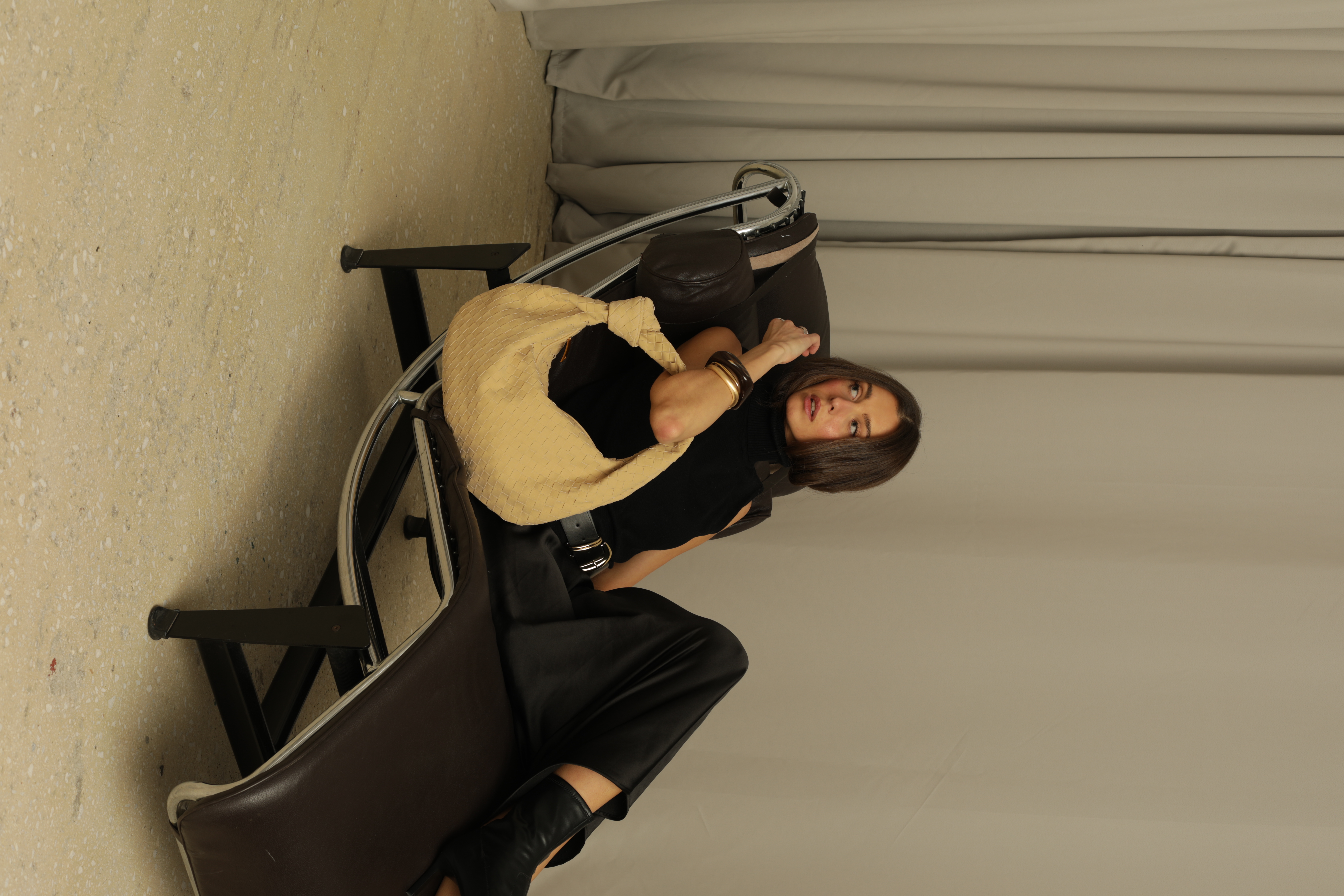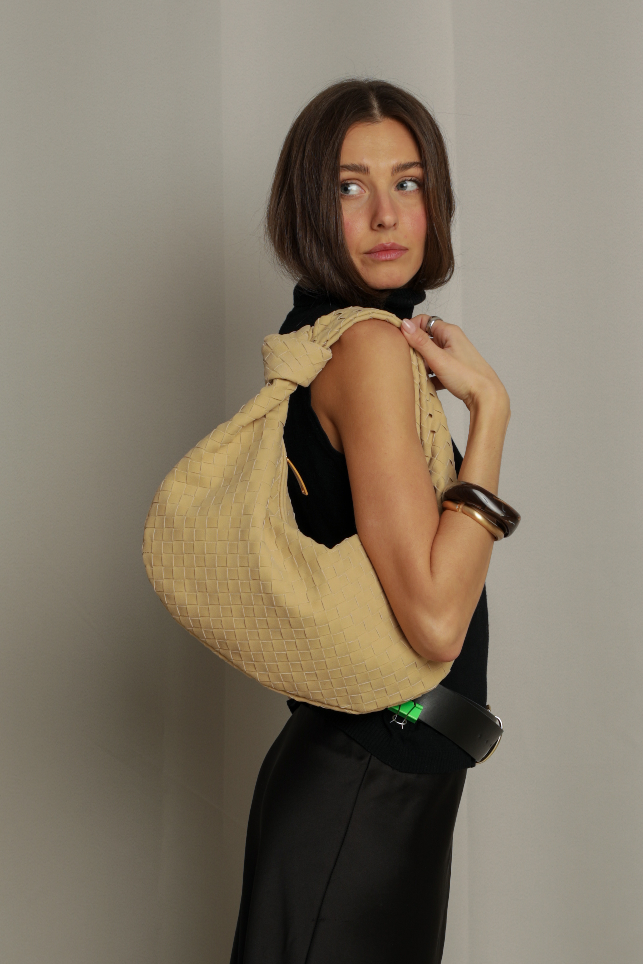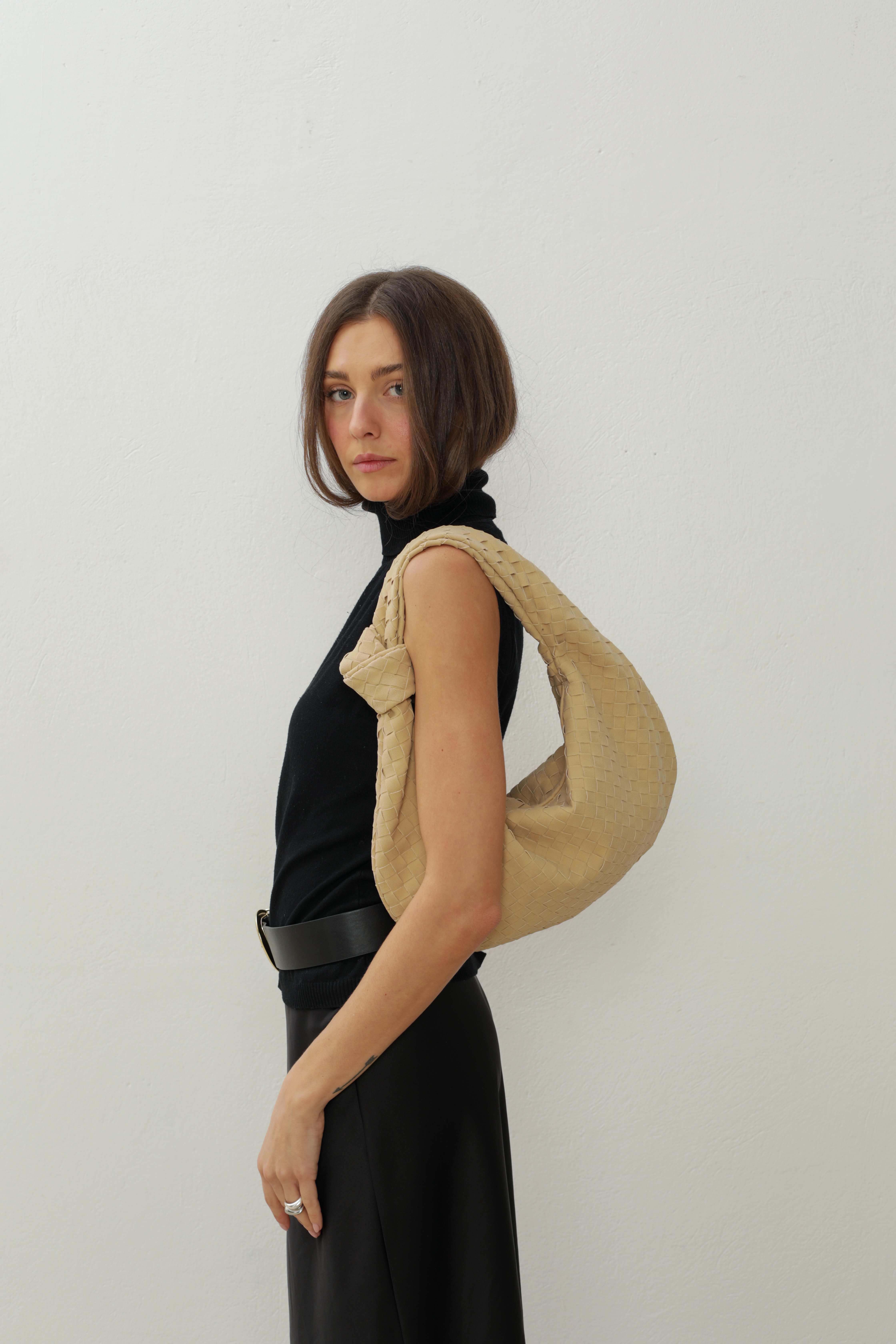 Suede Hobo bag with knot in beige