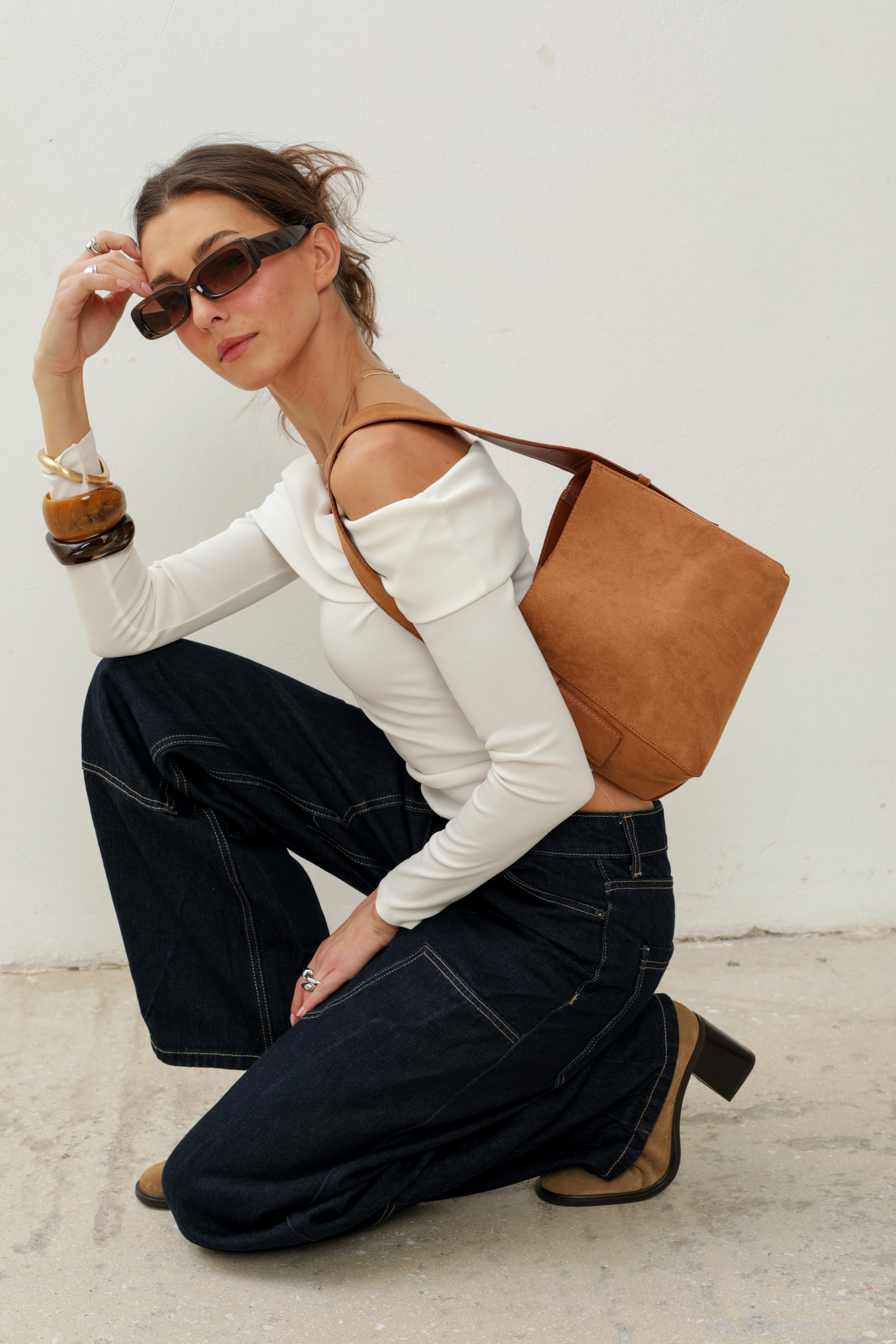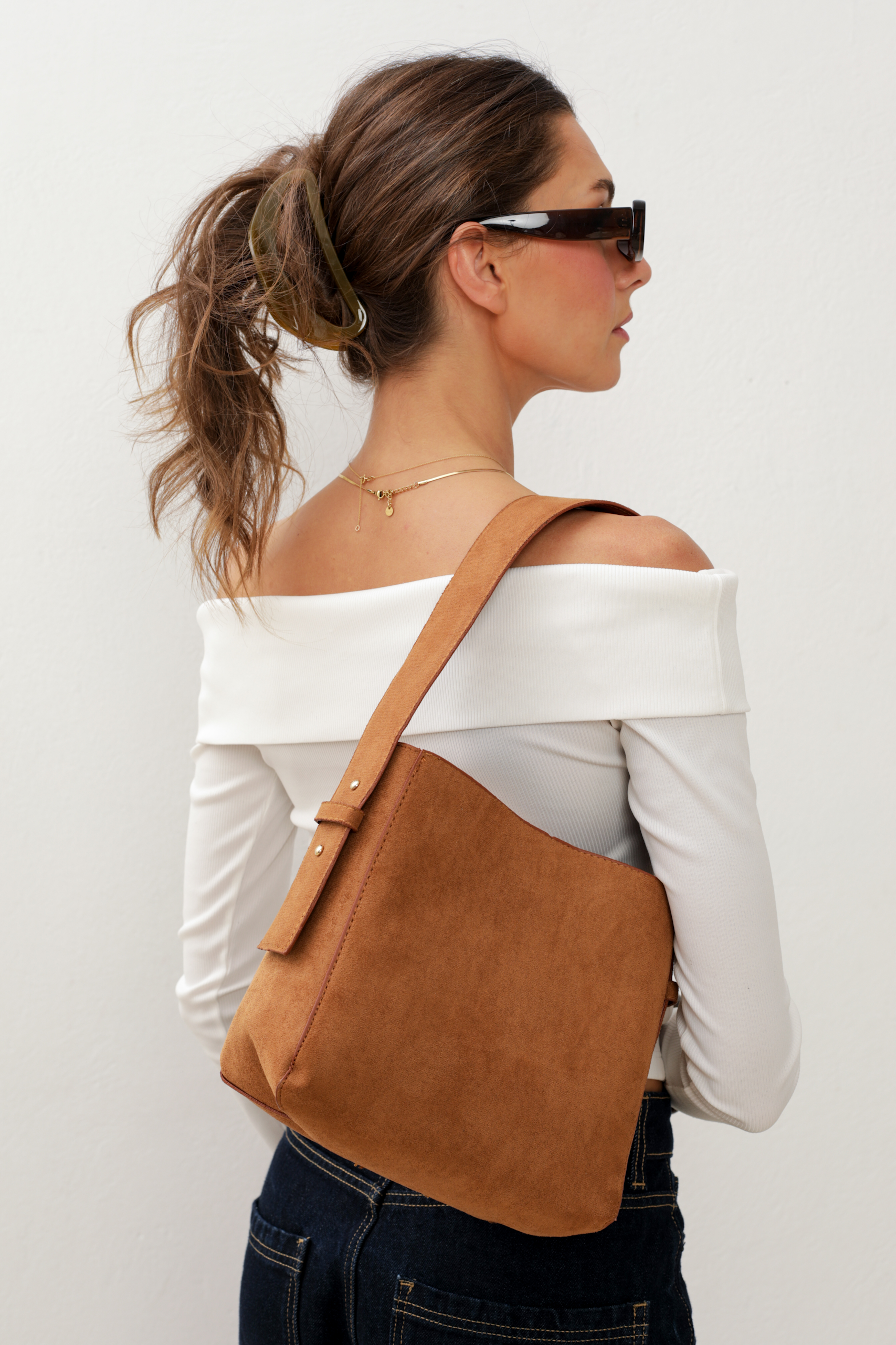 Soft Vegan Suede Bucket bag in light brown