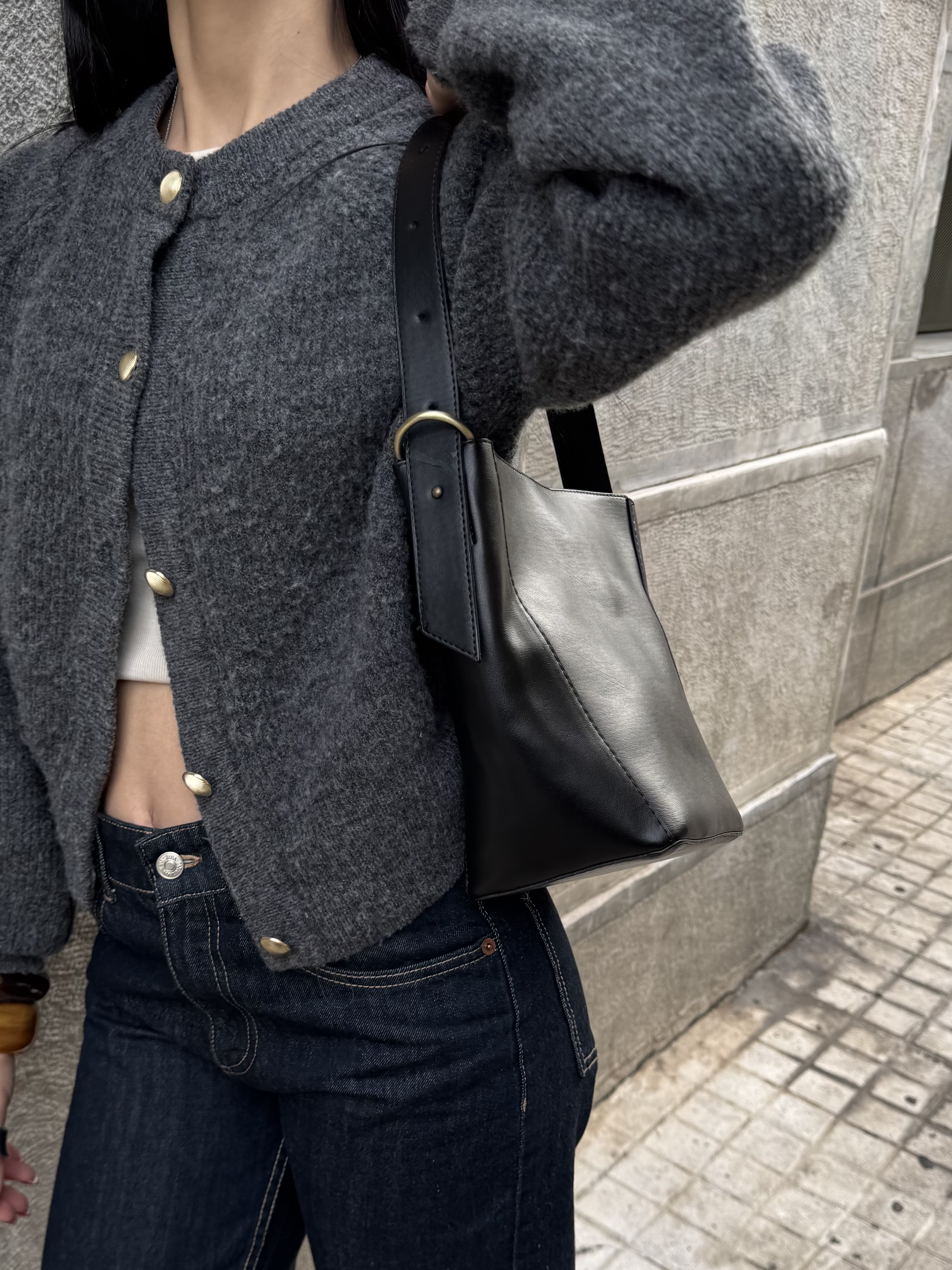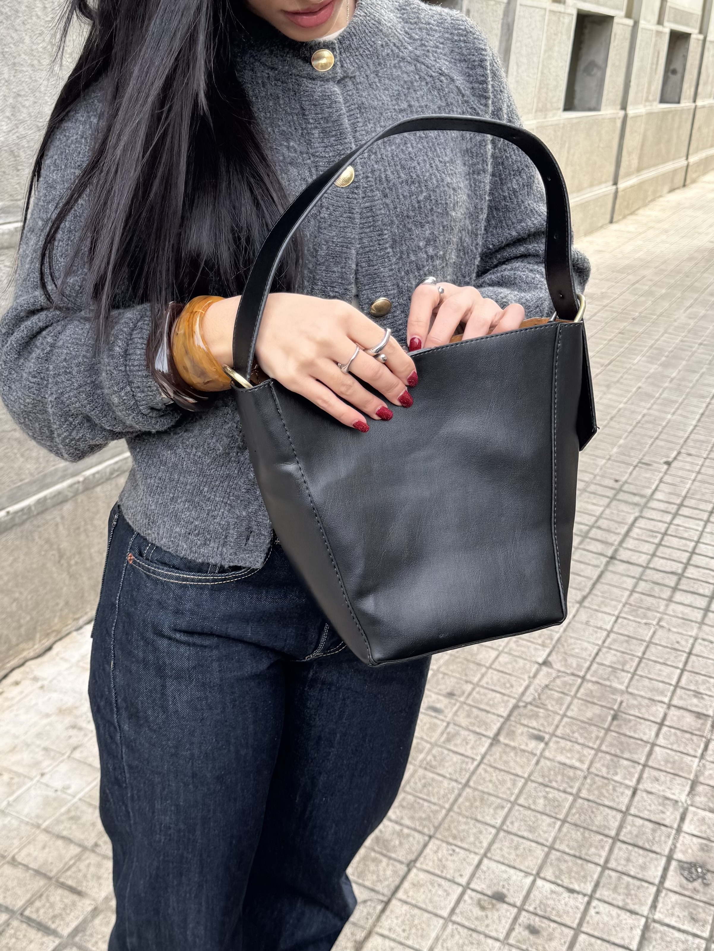Vegan Bucket bag with metalic details