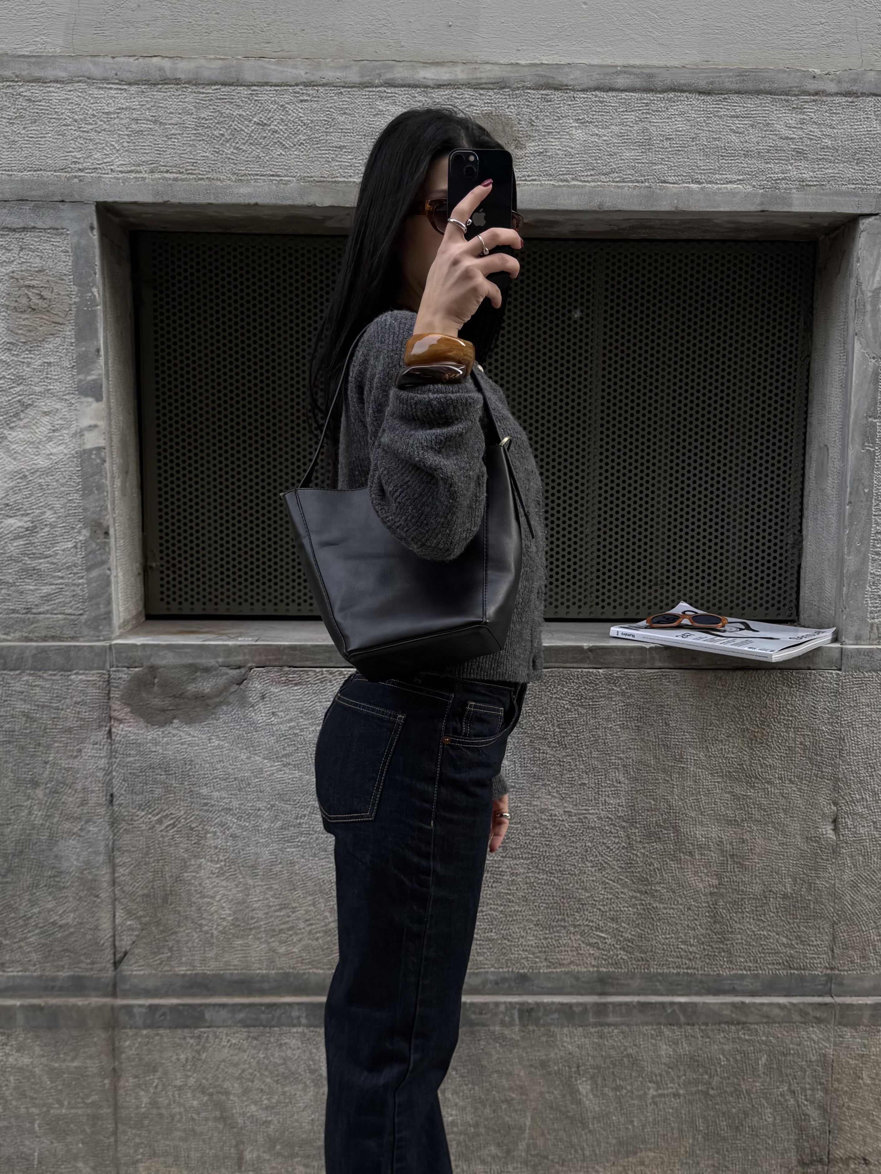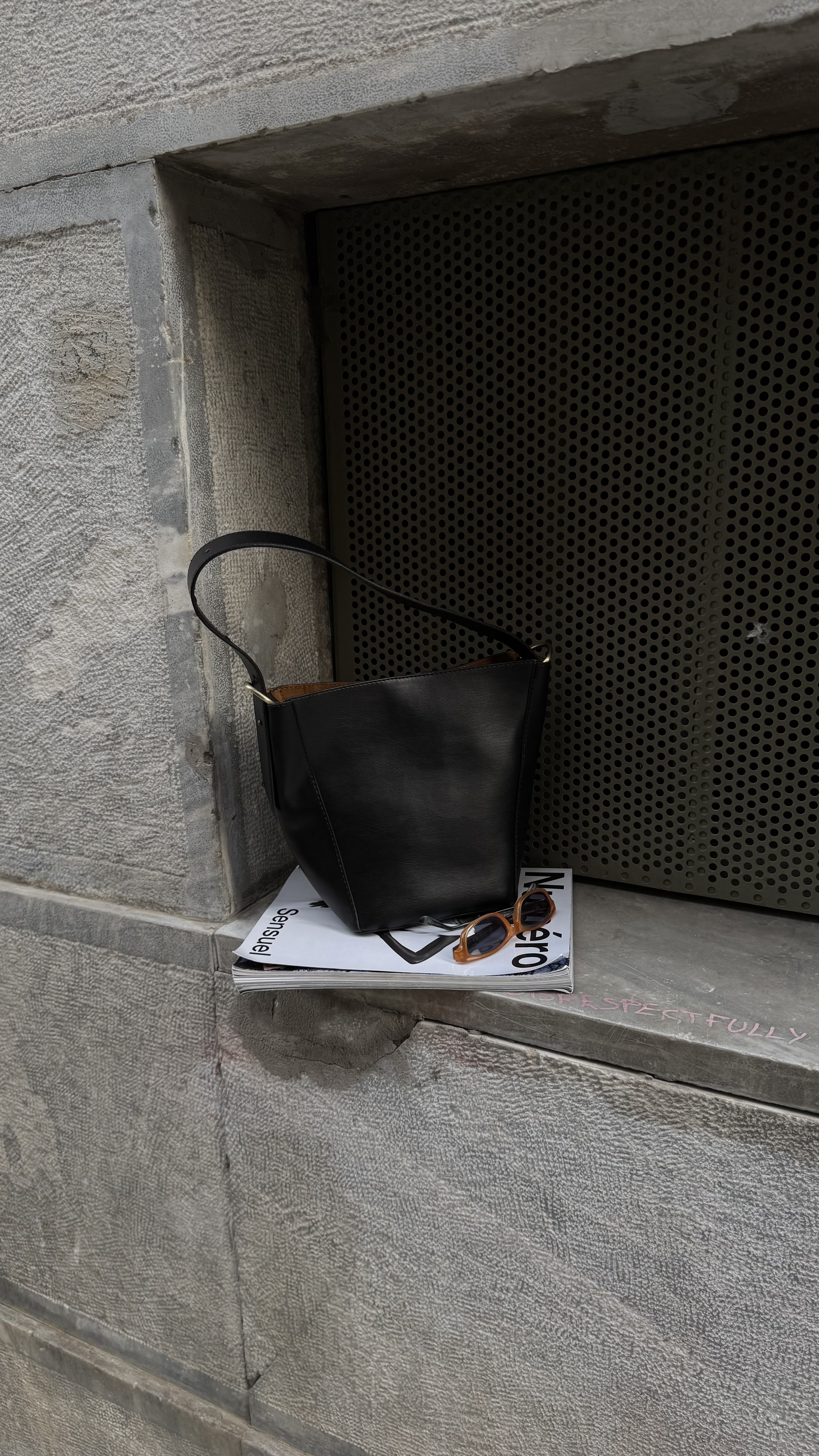 Vegan Bucket bag with metalic details in black