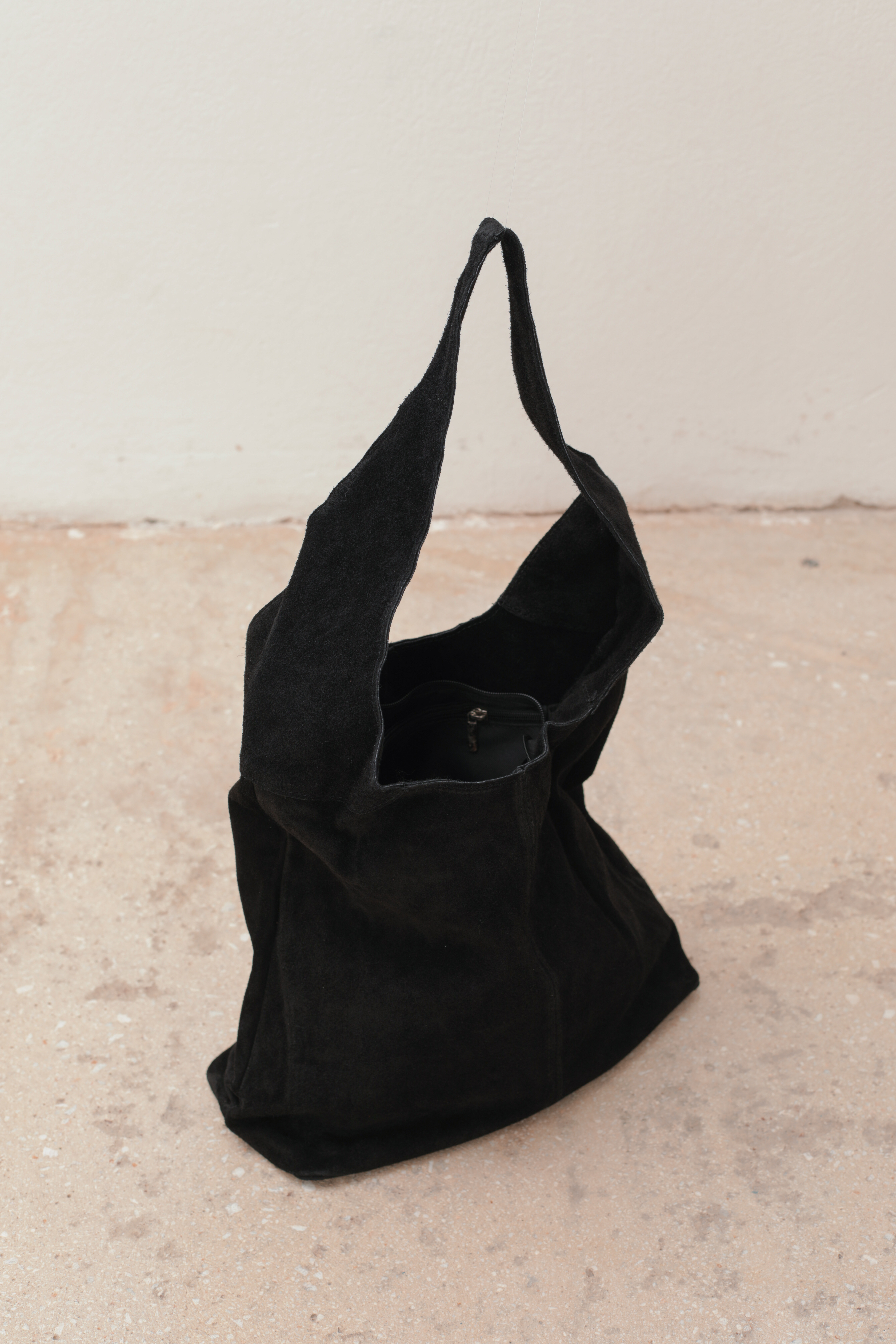 Suede Shoulder bag with zipper in black