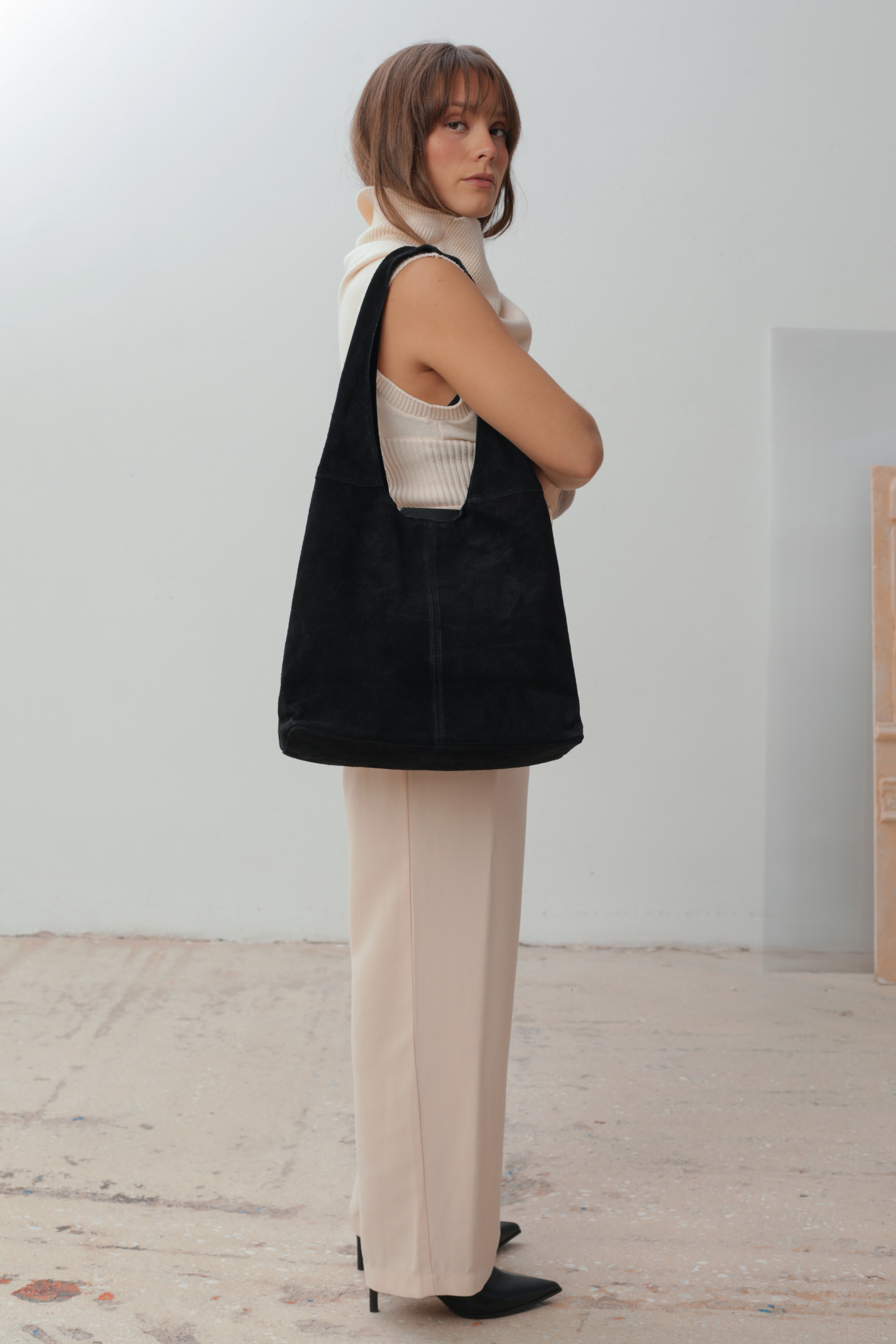 Suede Shoulder bag with zipper
